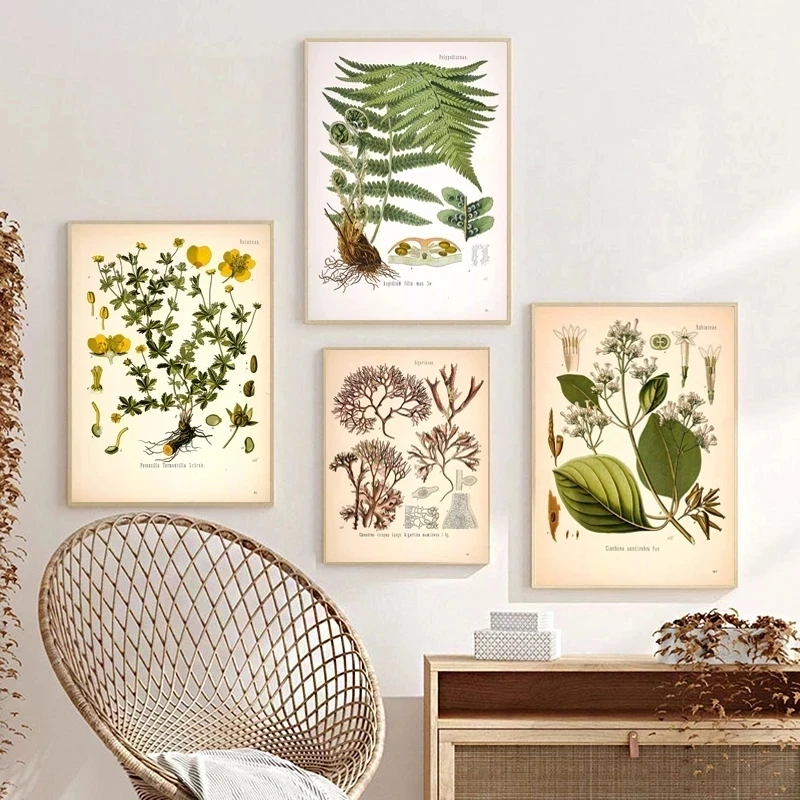 Винтажные постеры и принты лекарственных растений, ботаника, образовательные настенные картины, ботаническое украшение для кухни