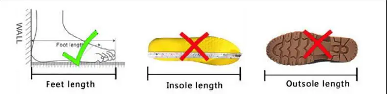 4. Пожалуйста, тщательно Измерьте длину вашей стопы. Метод показан на иллюстрациях (ниже).