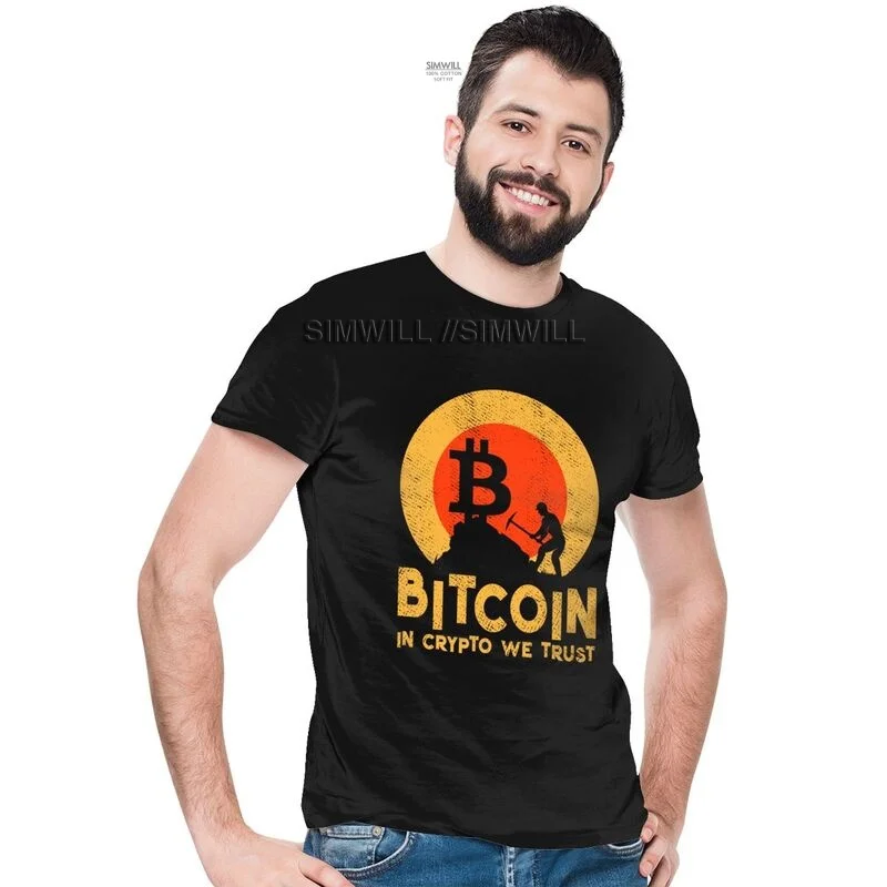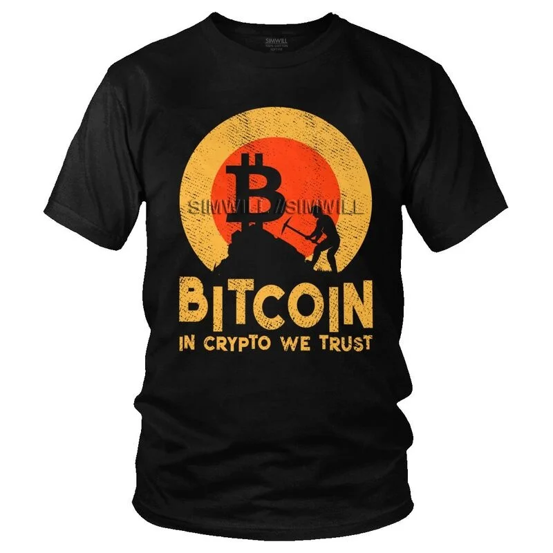 Винтажные Стиль Bitcoin футболка Шахтер мужские Harajuku футболка короткий рукав 100% хлопок в Crypto We Trust BTC футболка городской футболки
