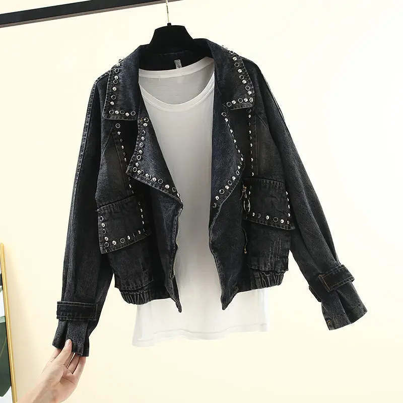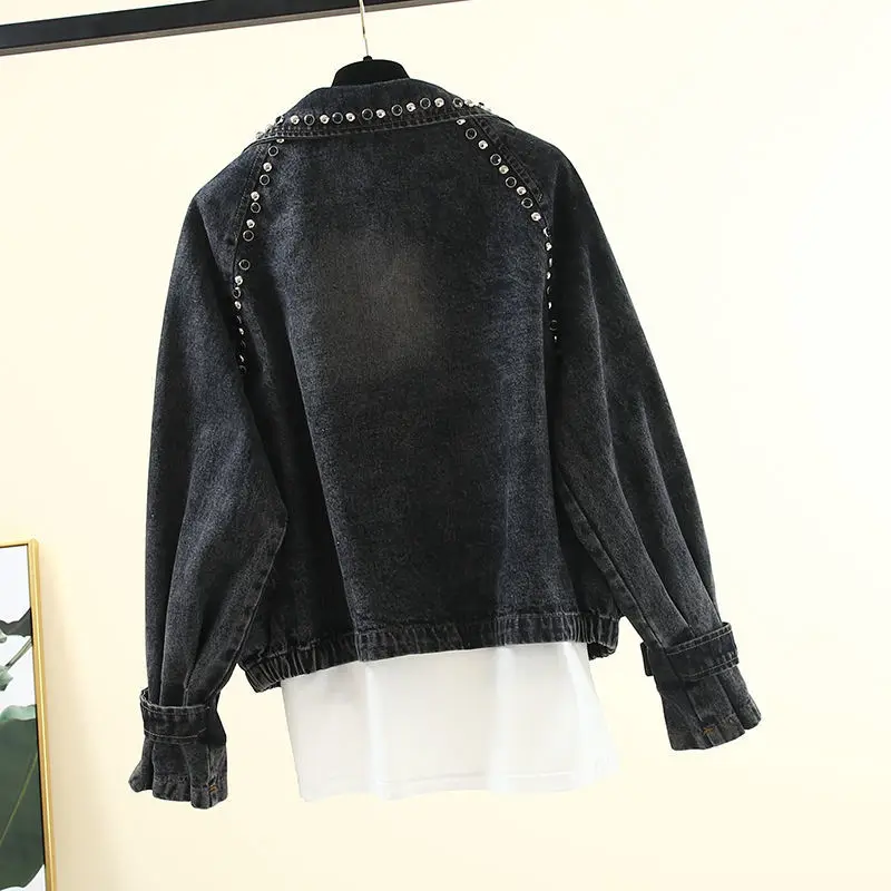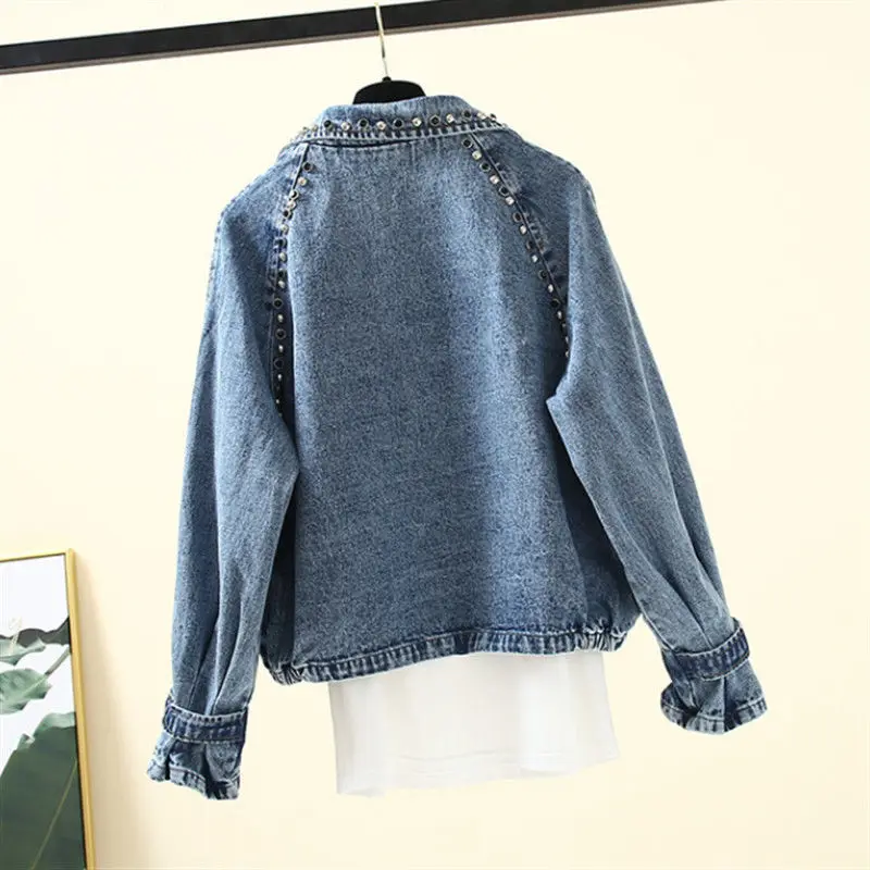 Женская джинсовая куртка с заклепками, повседневная мешковатая джин...