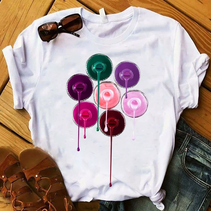 Новая красочная женская футболка с 3D принтом лака для ногтей, летн...