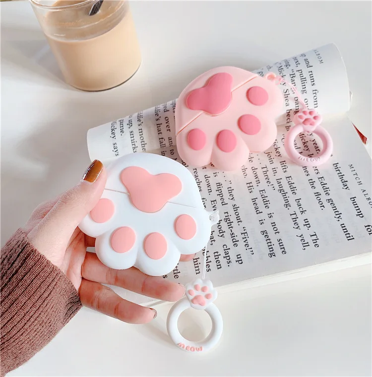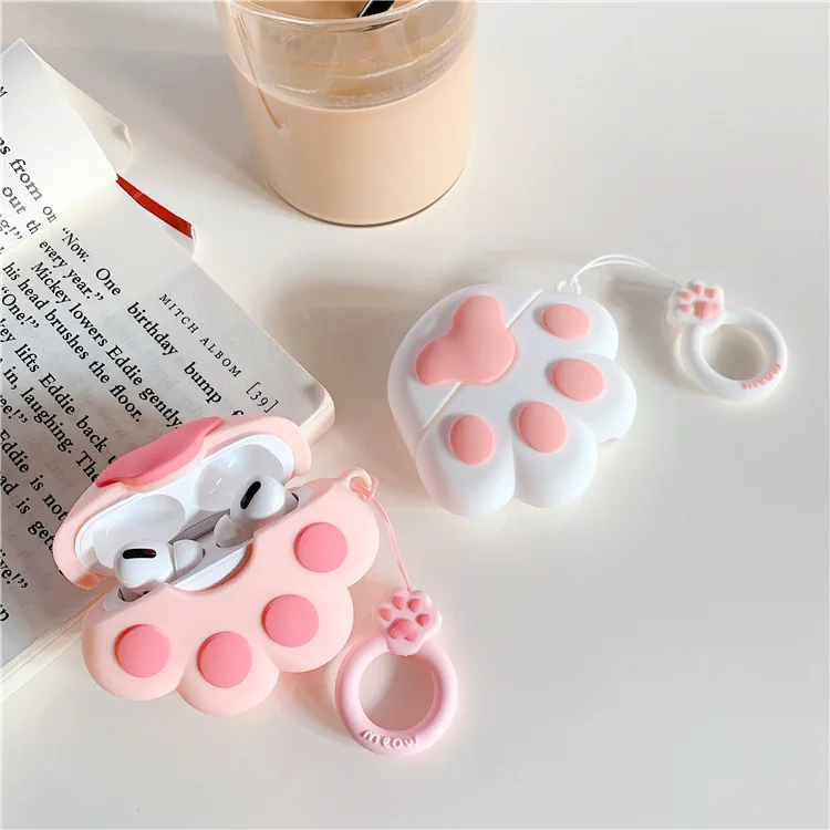Милый мультяшный силиконовый чехол для наушников с 3D кошачьими лапами для девочек, для Apple AirPods1 2 Pro, Bluetooth-гарнитура, чехол для зарядного устройства