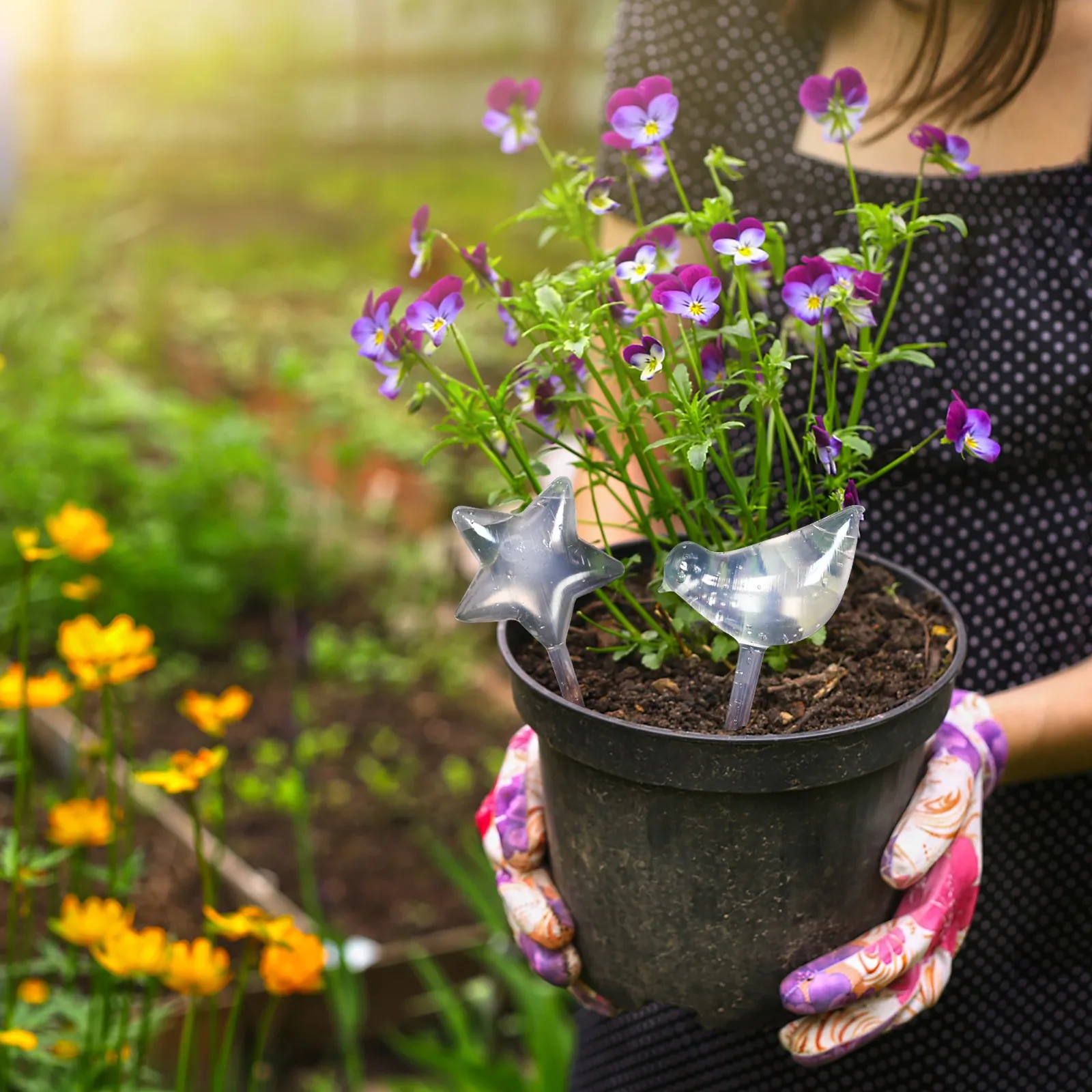 Хорошо видимая Емкость воды: ПВХ материал, не хрупкий, хорошая проницаемость, вы можете четко видеть количество воды внутри, заполнить водой и непосредственно вставить устройство для полива в почву, вы можете обеспечить воду, необходимую растениям каждый день, и помочь вам позаботиться о цветах дома.