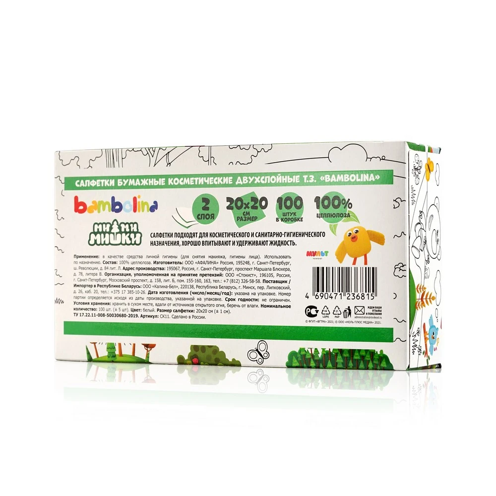 Детские бумажные салфетки Bambolina 100шт x 2 шт