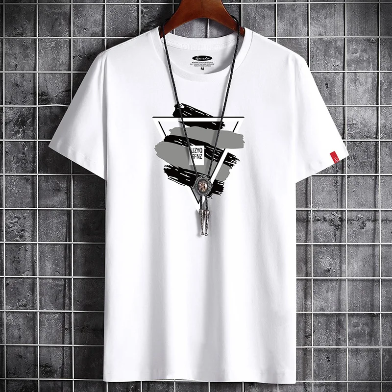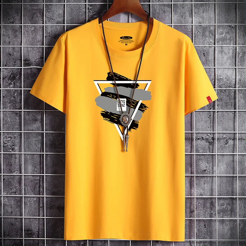 Новинка 2021, летняя Мужская хлопковая футболка, Повседневная Базовая футболка с коротким рукавом, повседневные свободные топы, футболки, S-6XL одежда для подростков
