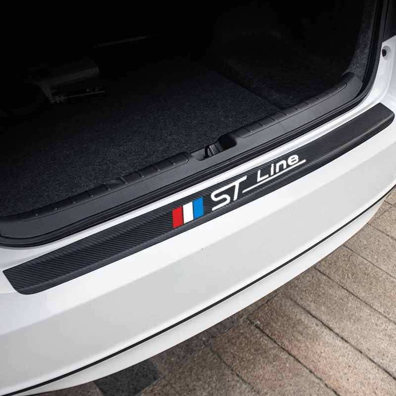 Наклейки из углеродного волокна на задний бампер автомобиля, защитные наклейки на багажник, кожаные наклейки, наклейки для Ford Focus MK2 ST Stline виноградник F150, аксессуары