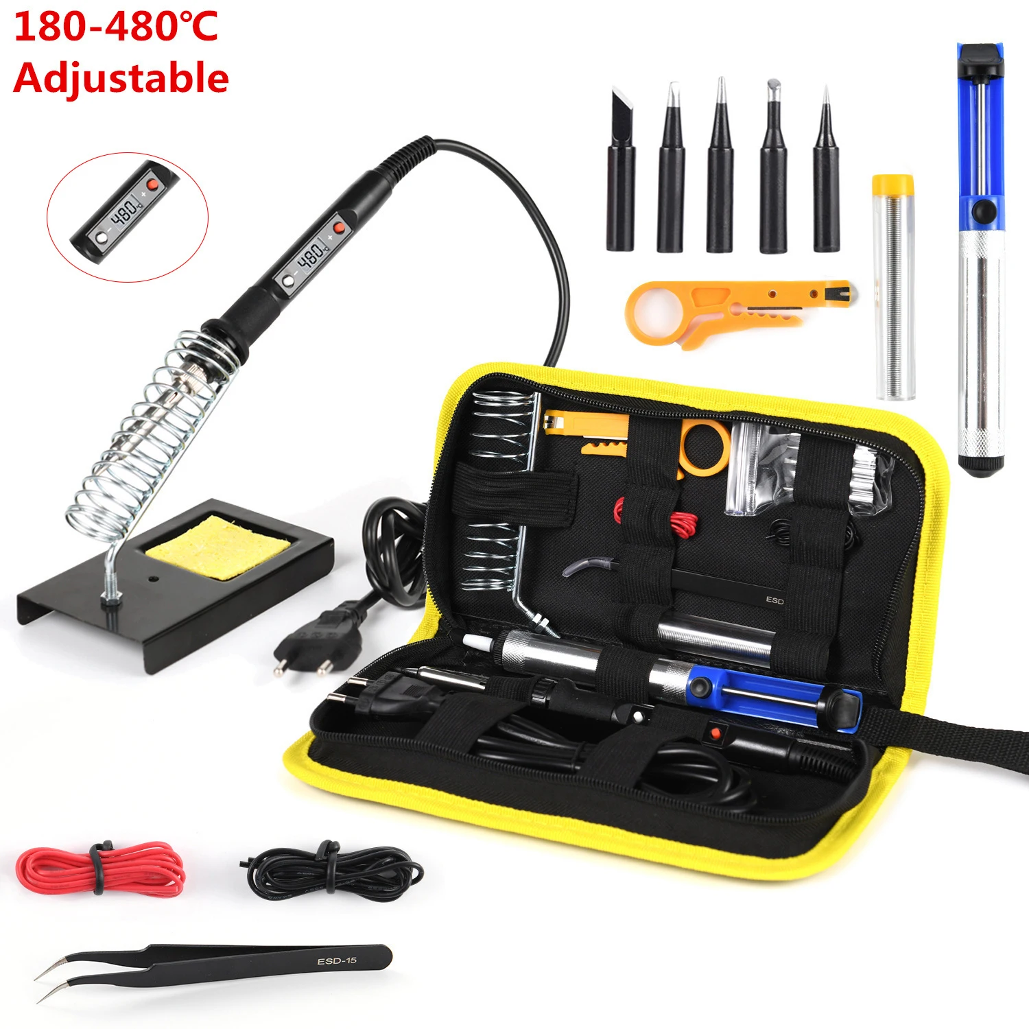 Электрический паяльник, инструменты для ремонта, насадки для пайки 80 Вт с регулируемой температурой, ЖК-дисплеем, 110 В 220 В