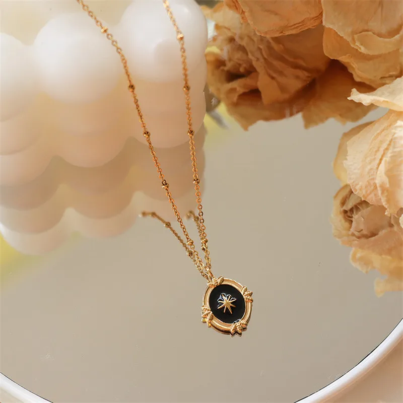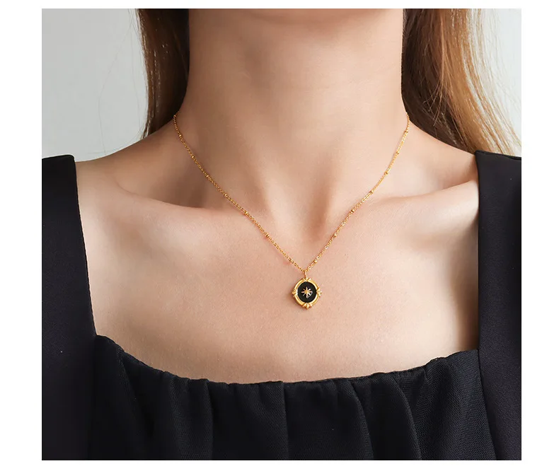 Аксессуар из нержавеющей стали женское ожерелье с подвеской, звезда, эмаль, золото, серебро, анис