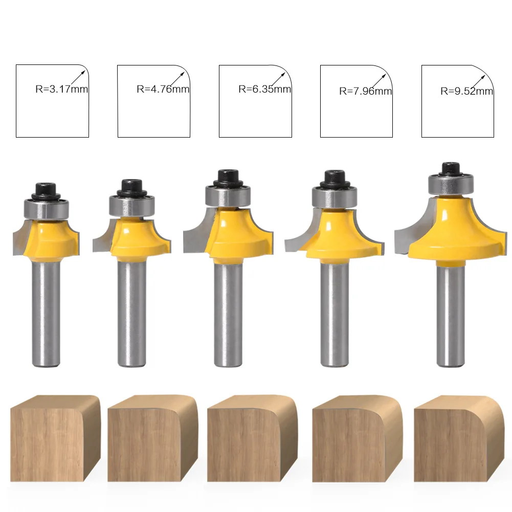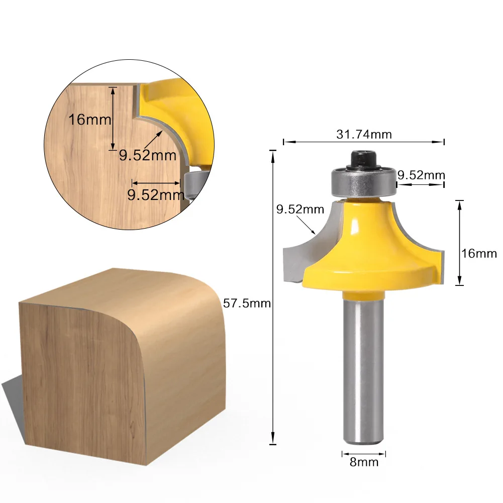 Фреза по дереву с хвостовиком 8 мм, 1 шт., угловая, круглая, с подш...
