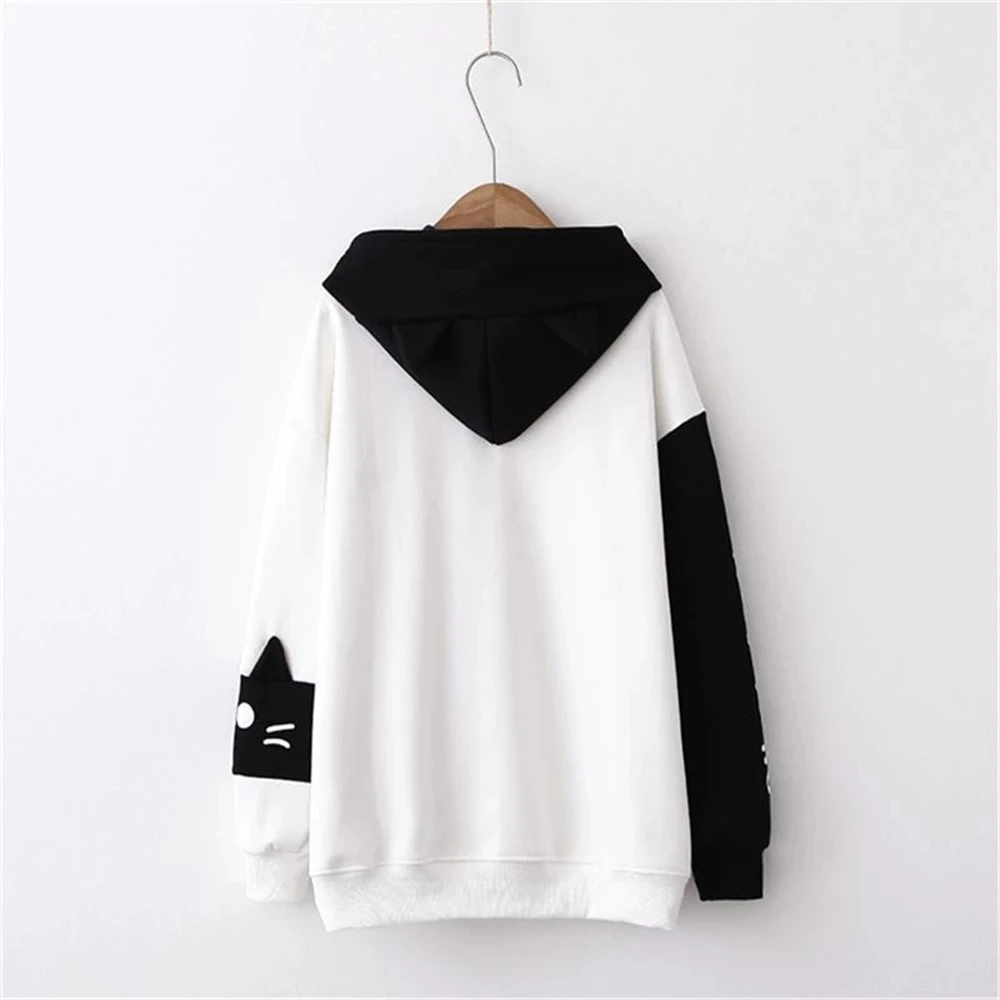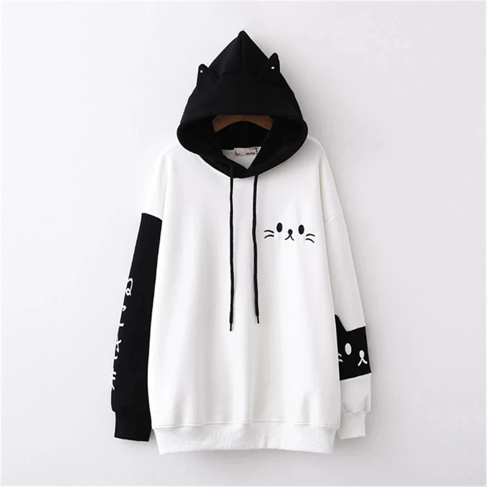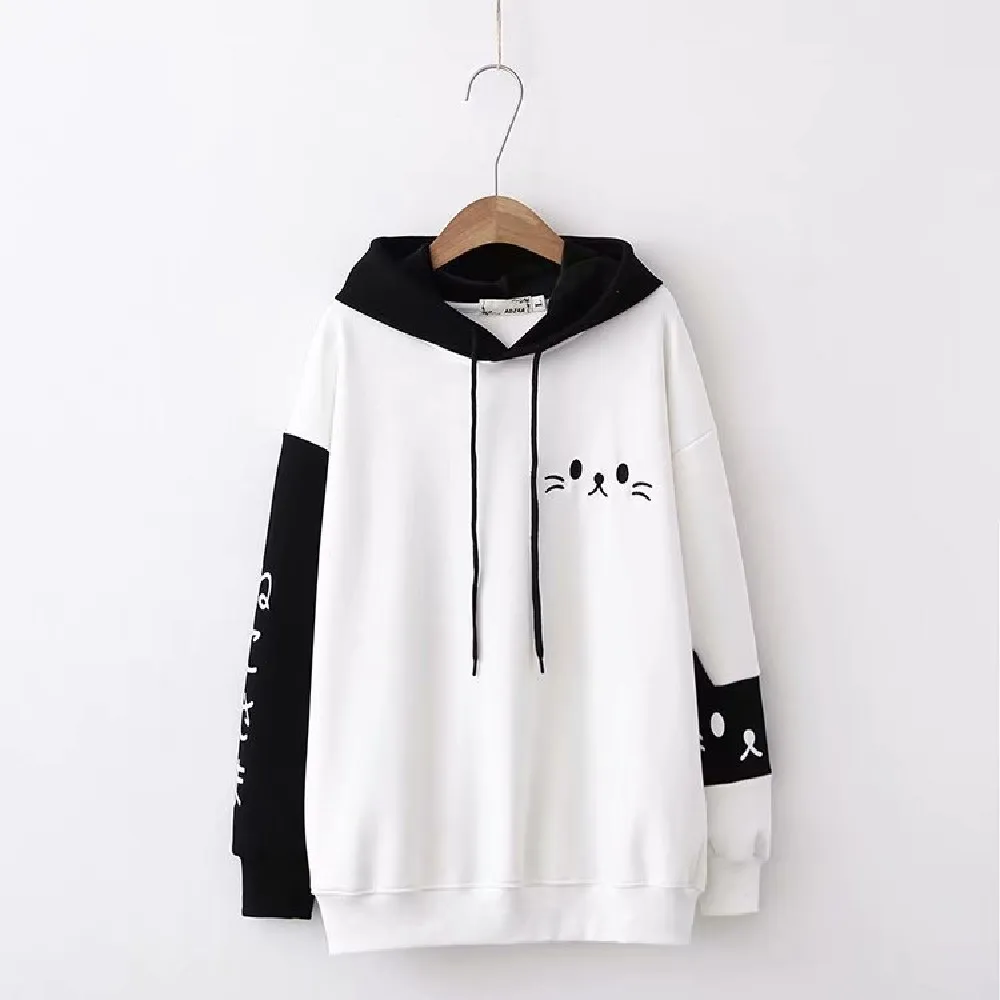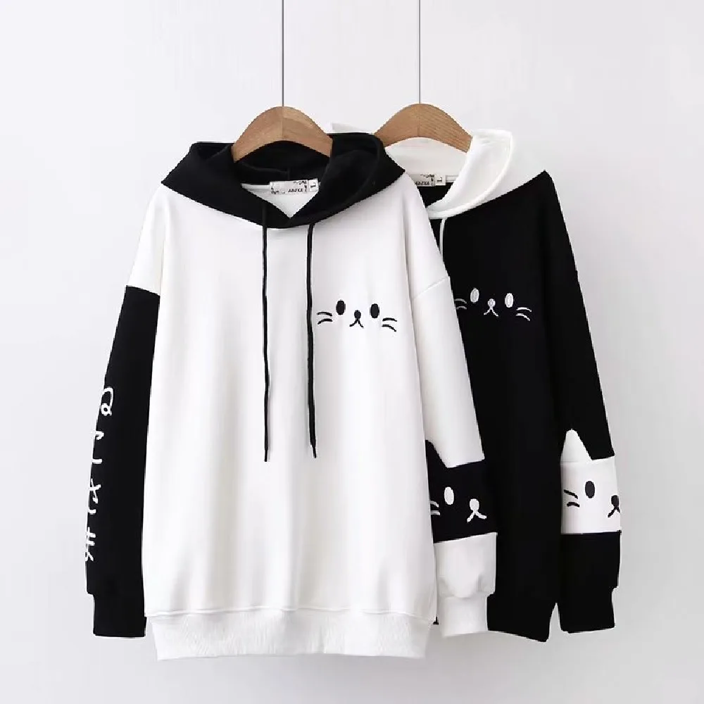 Толстовки для девочек-подростков с котами, Осенние, вельветовые, с капюшоном, в стиле Харадзюку