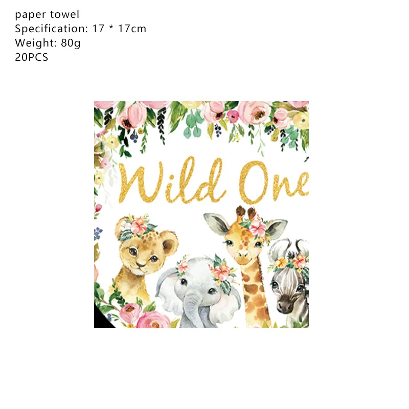 Новинка, платье для дня рождения для девочки джунгли вечерние набор одноразовой посуды сафари тема Бумага пластина соломенная чашка салфетка для девочек розового цвета с рисунком и надписью Wild One вечерние Декор