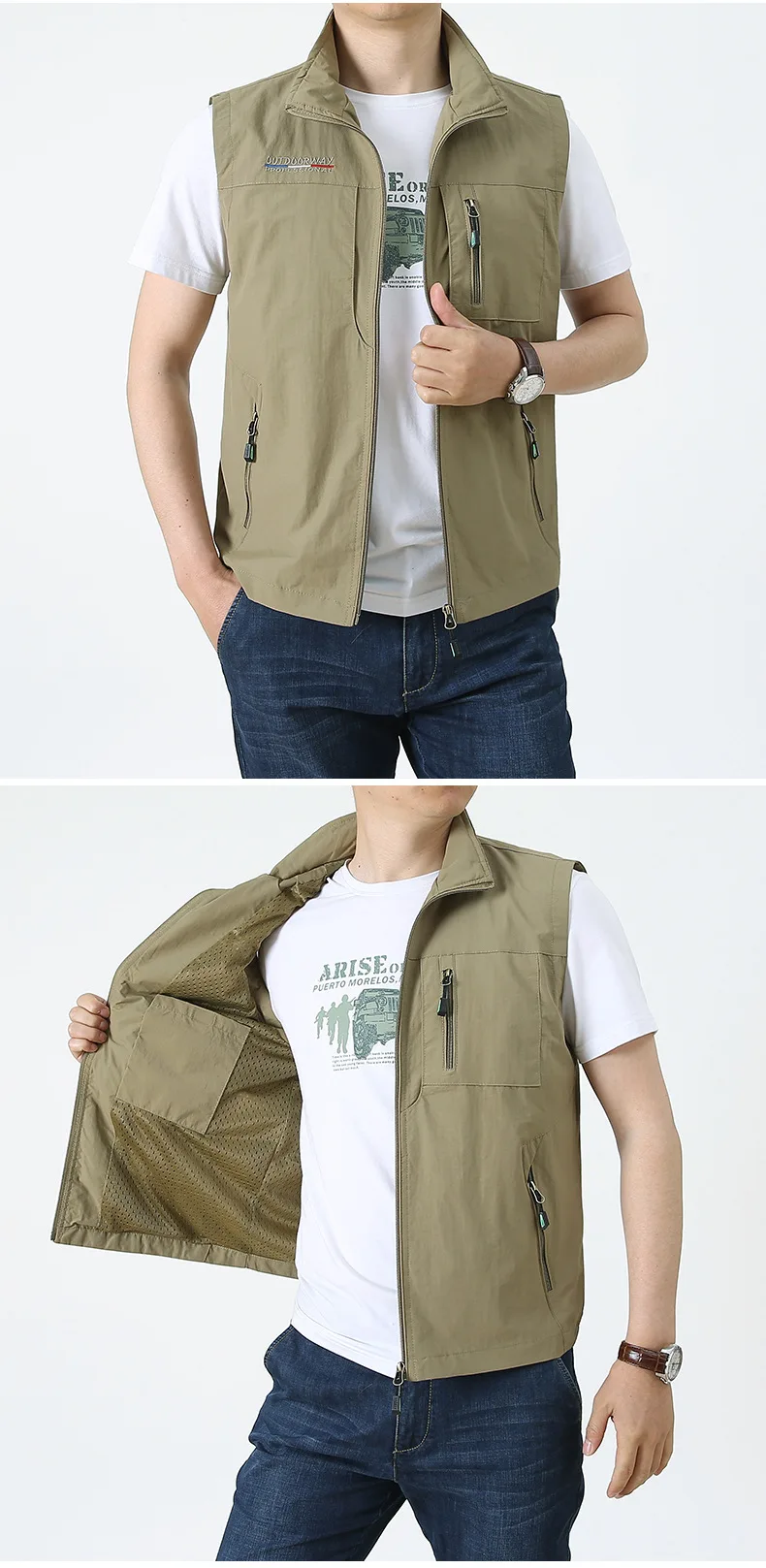 Жилетка мужская Уличная Повседневная, тактический жилет с несколькими карманами, мужская куртка без рукавов для походов и рыбалки, большие размеры, весна-лето, M-6XL