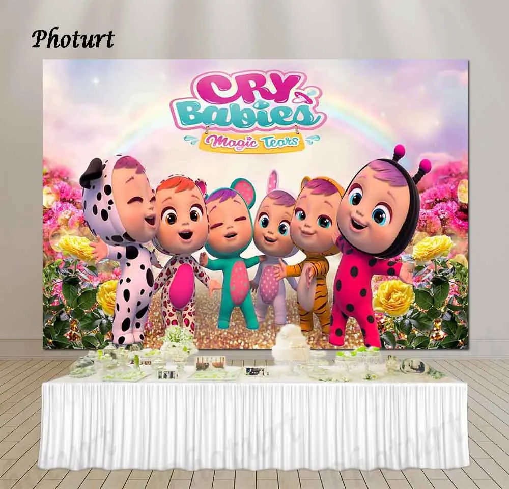 Фон для фотосъемки с изображением плача младенцев волшебной слезы баннер на день рождения девочки для будущей мамы Радужный фон из полиэстера виниловые декоративные реквизиты