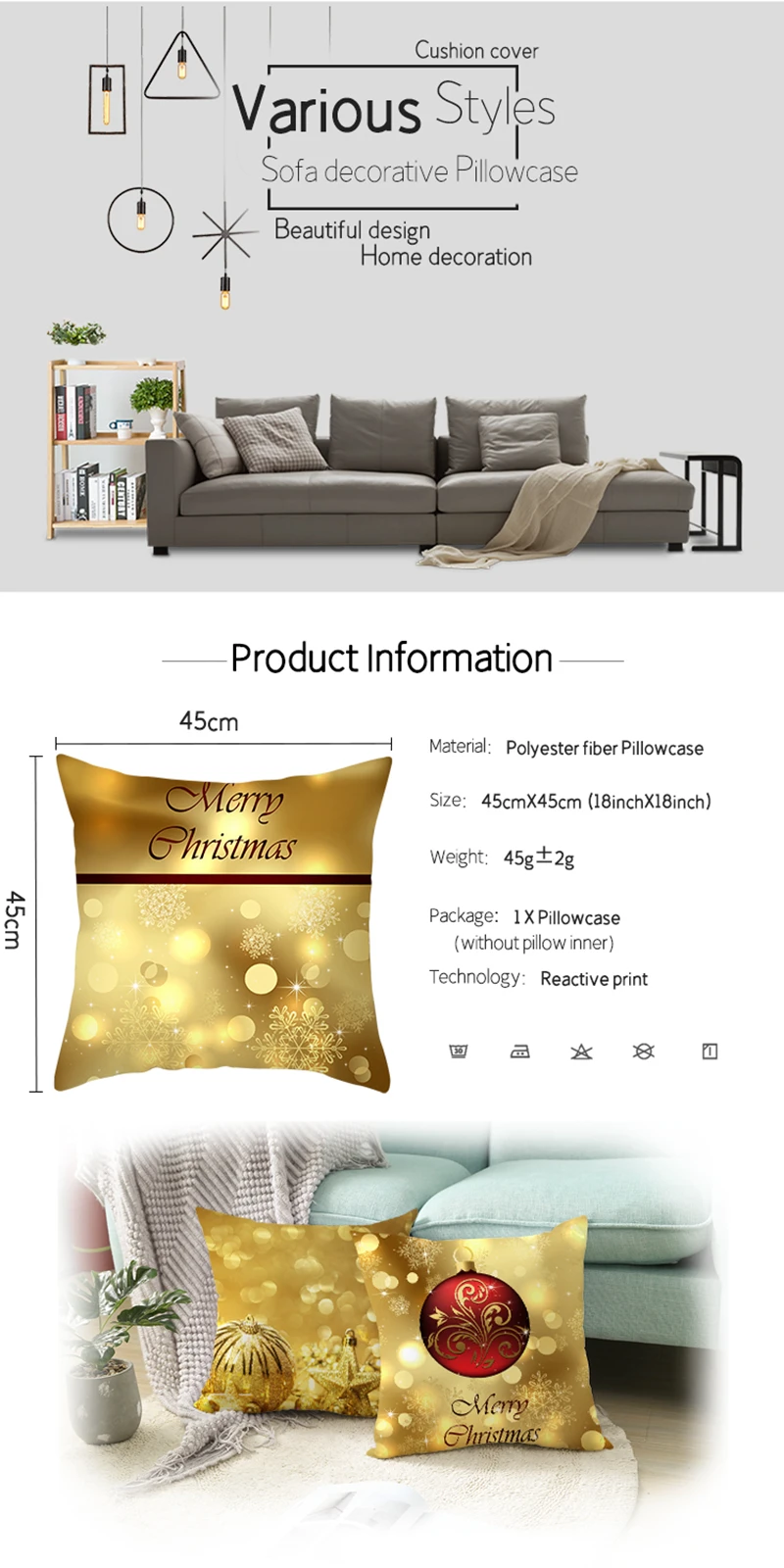 Золотистая желтая Рождественская наволочка креативная золотистая Ро...