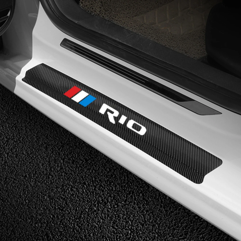 4 шт. защитные наклейки из углеродного волокна на пороги автомобиля, защитные кожаные наклейки, виниловые наклейки для KIA RIO 2 3 4 5 Xline, аксессуары для стайлинга автомобиля
