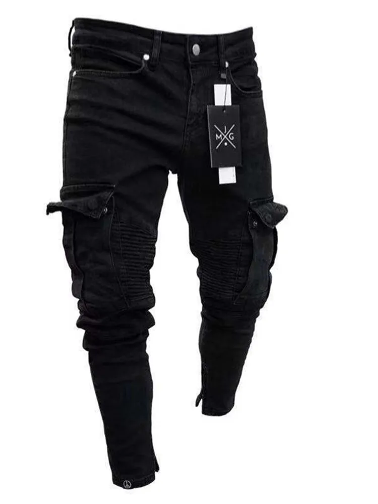 Джинсы мужские скинни, облегающие брюки-карандаш со множеством карманов, черный комбинезон, уличная одежда в стиле хип-хоп для мото и велосипеда, одежда, джинсы, 2021