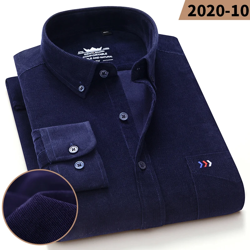 Рубашка мужская Вельветовая с длинными рукавами, повседневная классическая Классическая деловая рубашка кроя Regular Fit, удобная размера плюс с карманами, 100% хлопок, 7XL