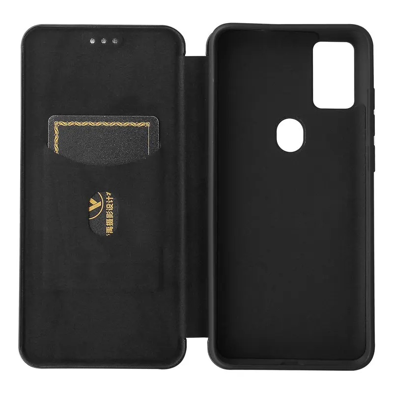 Чехол для TCL 20 SE, кожаный чехол-книжка из углеродного волокна дл...