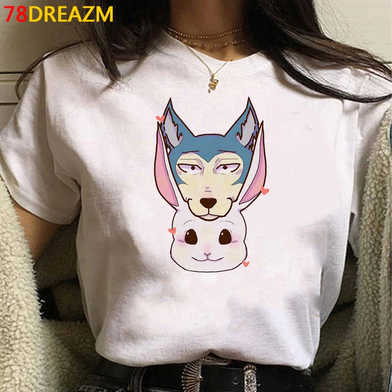 Футболка мужская Beastars Legoshi, уличная одежда в стиле улззанг, повседневная Милая футболка для пар, уличная одежда в стиле Харадзюку, размера плюс