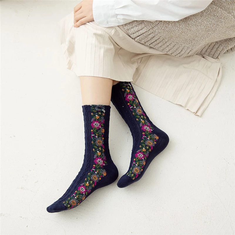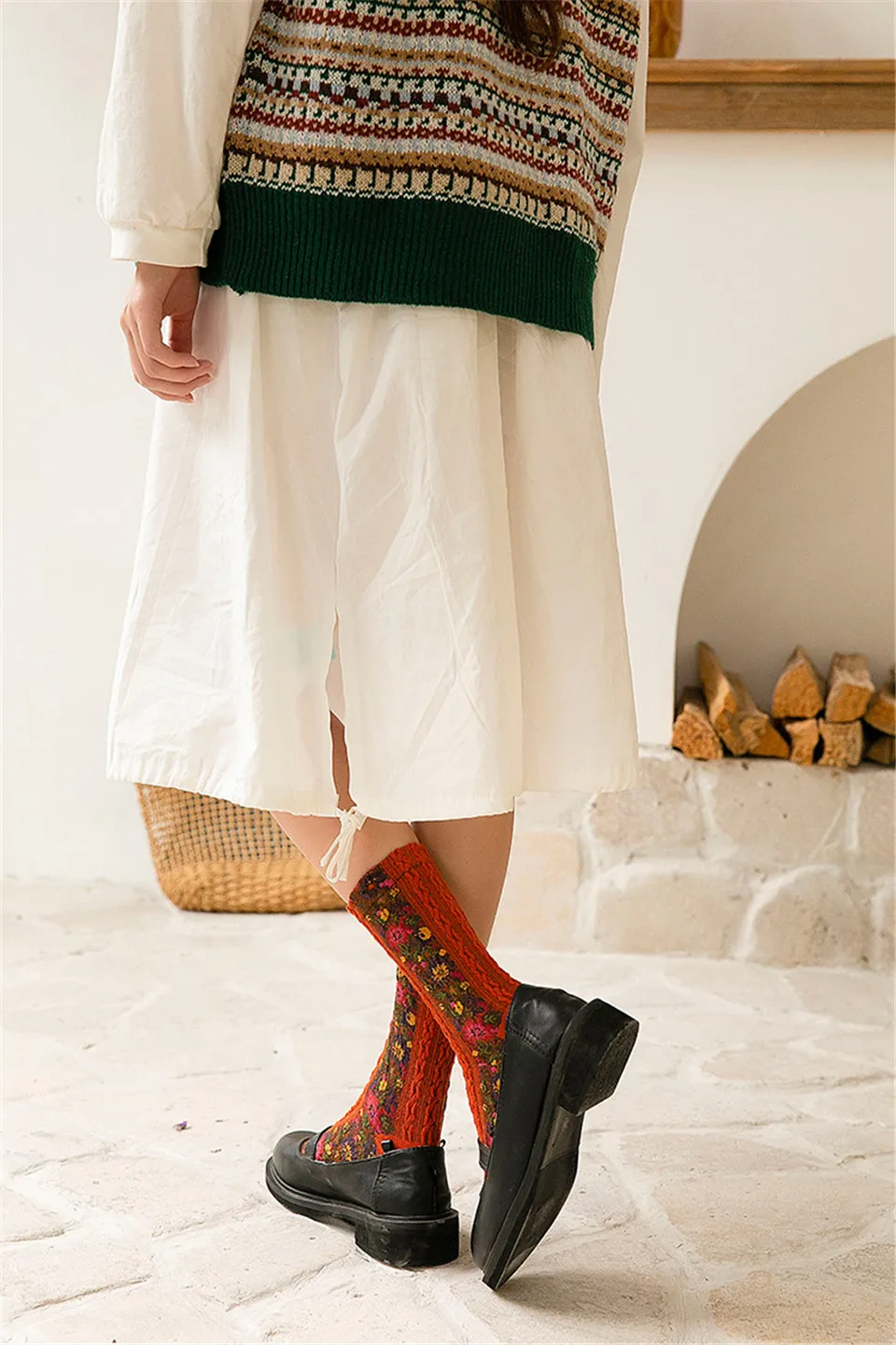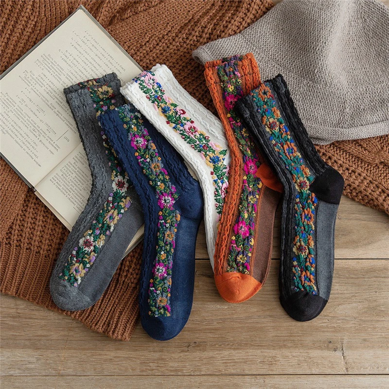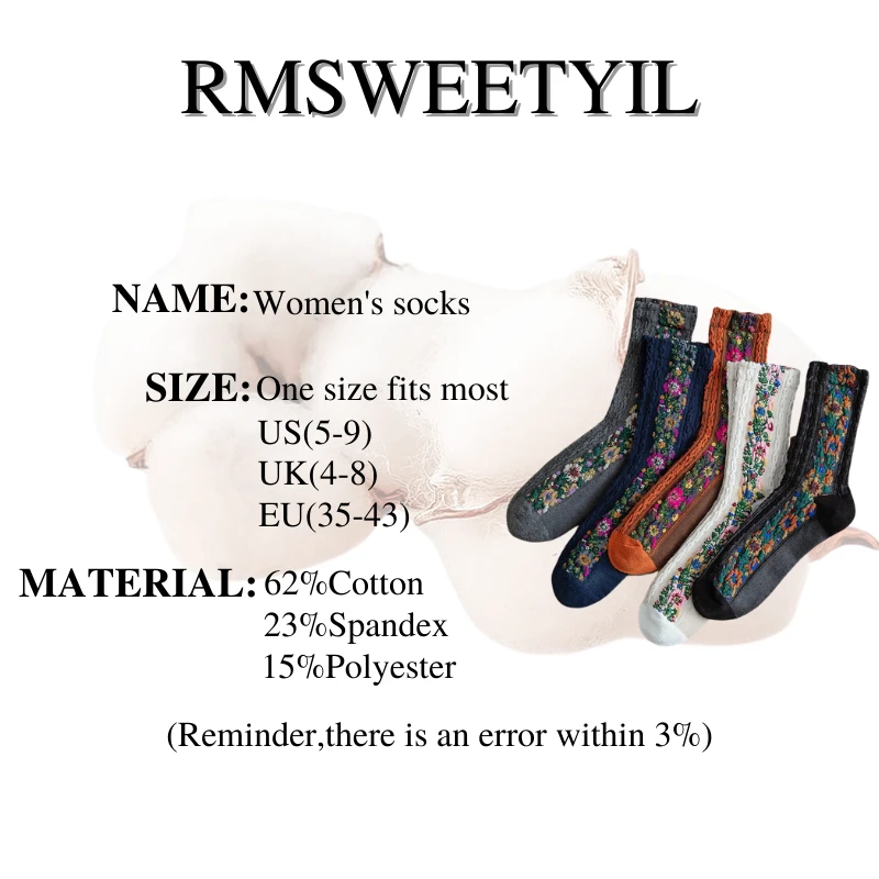 . Женские носки с цветочным принтом в скандинавском стиле, мягкость и гибкость в сочетании с идеальным жаккардовым переплетением, в винтажном ретро-стиле, сделают вас особенной . Материал: 62% хлопок, 23% спандекс, 15% полиэстер (супермягкий, удобный, дышащий и впитывающий пот) . Размер: США 5-9; Великобритания 4-8; ЕС 35-43 (размер измеряется вручную, возможна погрешность 3%, пожалуйста, поймите) . Применимо: подходит для любого случайного случая и времени года, положите Забавный завершающий штрих на ваши наряды. Это также лучший подарок для наших друзей и близких . Напоминание: машинная стирка, стирка в холодной воде, без отбеливателя