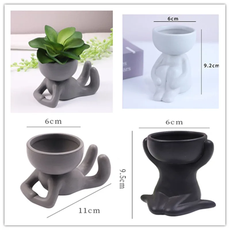 Особенности:1. Инновационный мини милый цветочный горшок в форме человека. Отлично подходит для мини-суккулентов и кактусов или декоративных свечей2. Подходит для украшения дома, и это также может сделать ваш офис уникальным. Это отличный подарок для ваших друзей, которым нравится посадка или животное; Изделие ручной работы, может иметь небольшую проблему с живописью3. Инновационный Подарочный Декор защищает вас от компьютерного излучения, потрясающее украшение на офисном столе. Милые и интересные подарки для мальчиков, девочек, друзей на день рождения, рождественских вечеринок.4. Многофункциональность: Используйте как цветочный горшок или горшок для растений. Также отлично подходит для ручек/карандашей.5. Отличительное растение ручной работы в комплект не входит. Забавное украшение для кого нравится садоводство. Привлекательный маленький плантатор, делает ваш стол уникальным.Спецификация:Цвет: черный/белый/серыйМатериал: керамикаРазмер: A--6 * 11 см, B--6 * 9,2 см, C--6 * 9,5 смВес нетто: около 150 гУпаковочный лист:1 * цветочный горшок