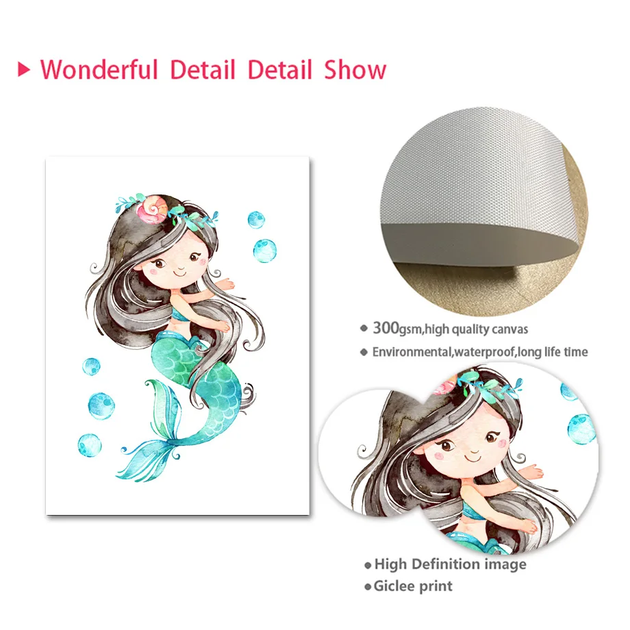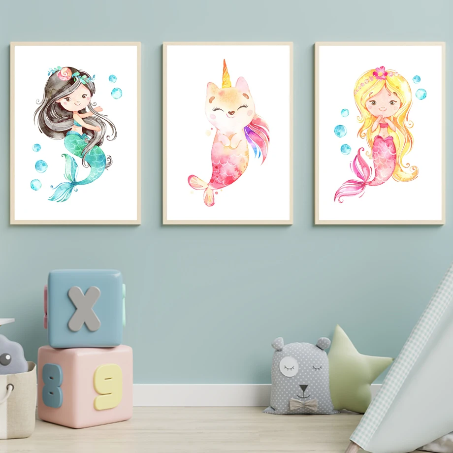 Кавайный Единорог Русалка пузыри мультфильмы скандинавские плакаты и принты настенная живопись на холсте настенные картины для детской комнаты декор для детской комнаты