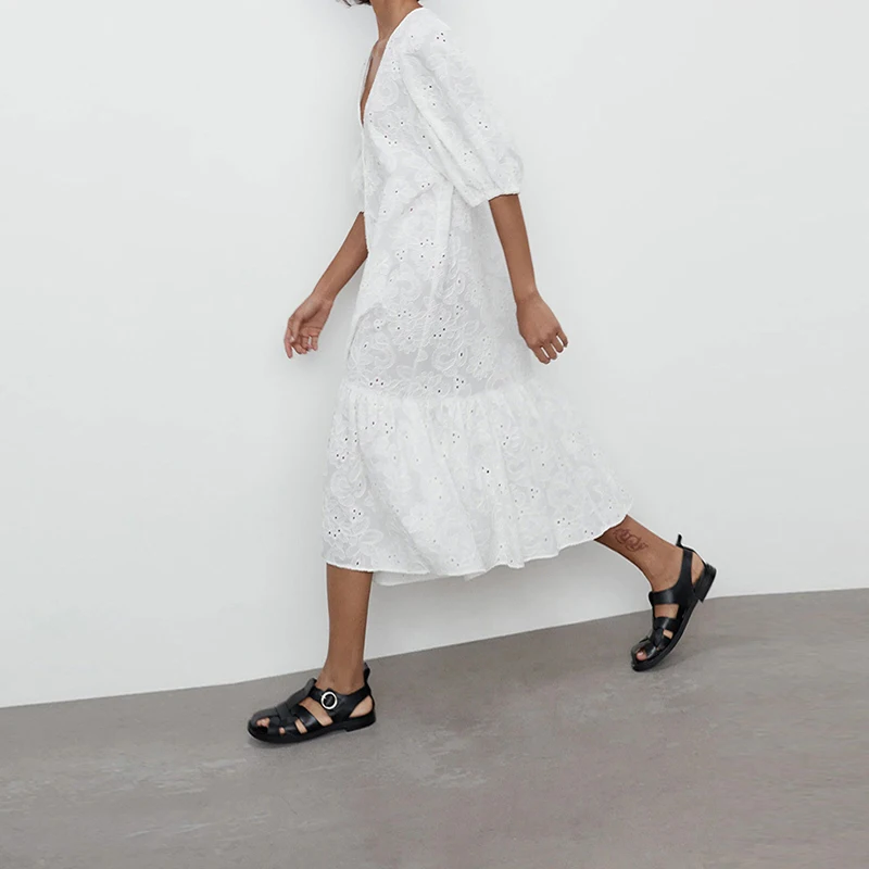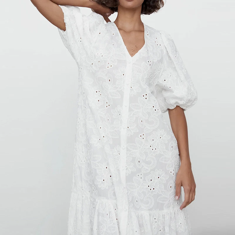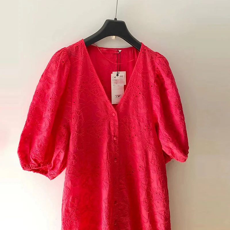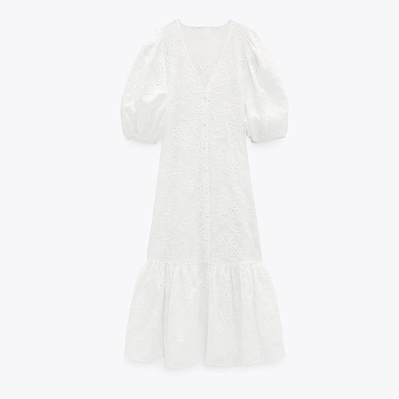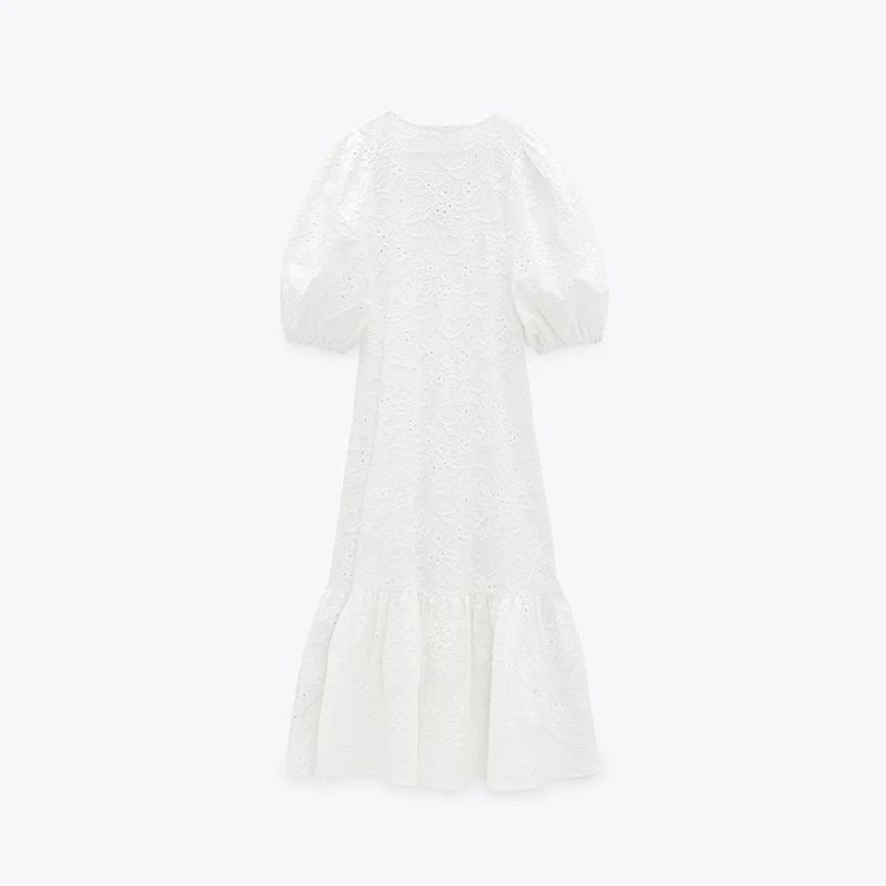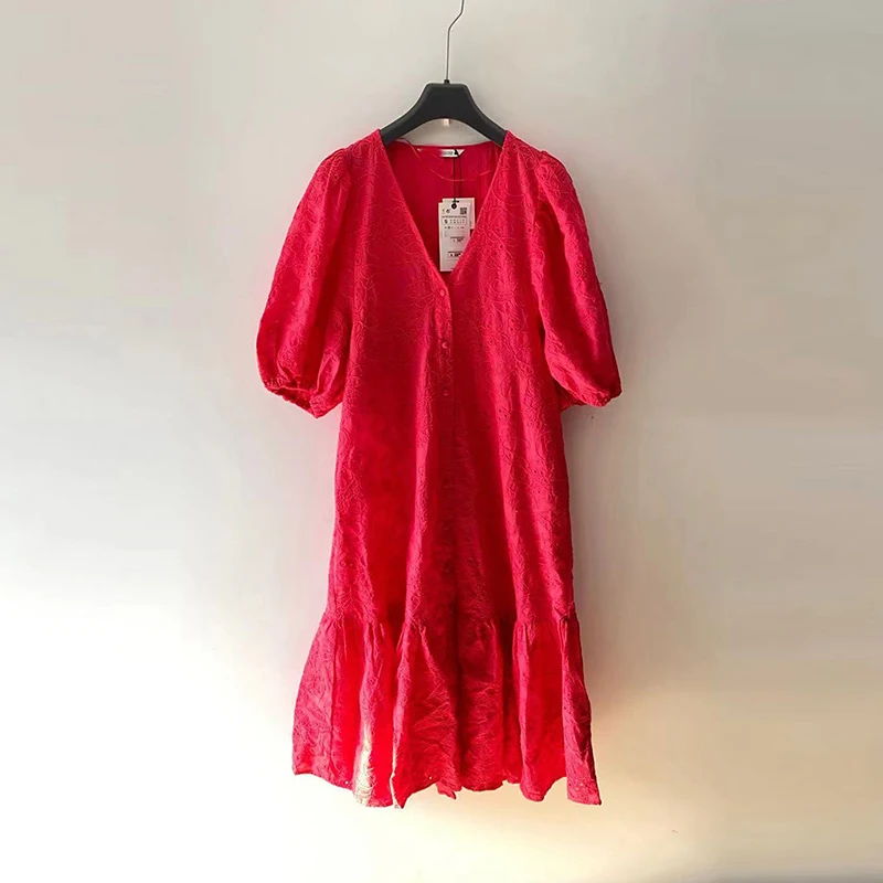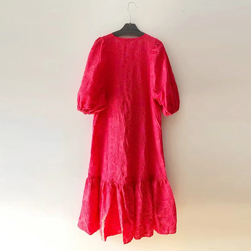 Женское длинное платье с V-образным вырезом, рукавом-фонариком и цветочным узором
