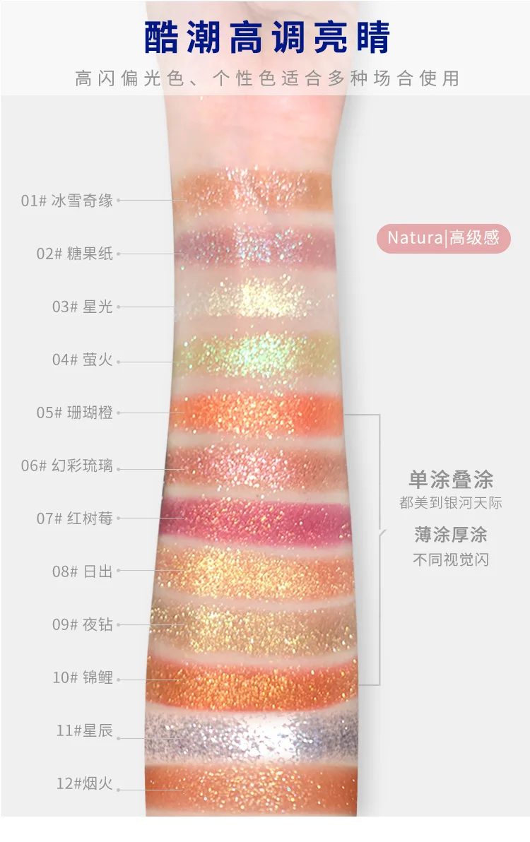 Бренд продукта: NOVOНазвание продукта: палитра теней 12 цветовТип: мерцающие блестящие тени для век PalleteЭффект: водонепроницаемый, долговечный, яркий, легко носитьБлеск: блестящий, мерцающий, матовыйЦвет: Доступно 12 цветов