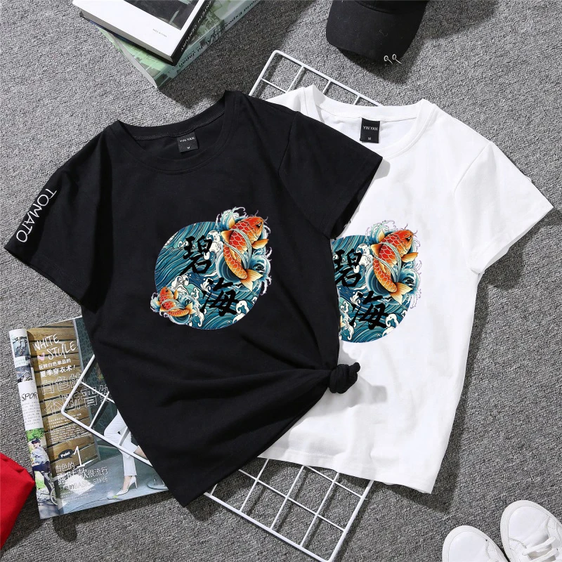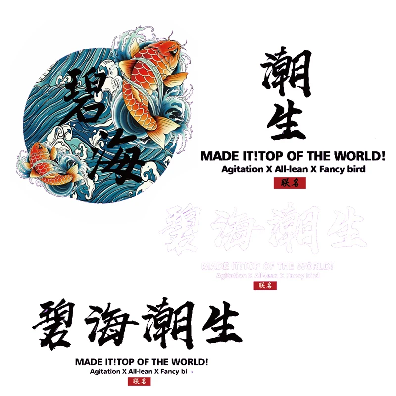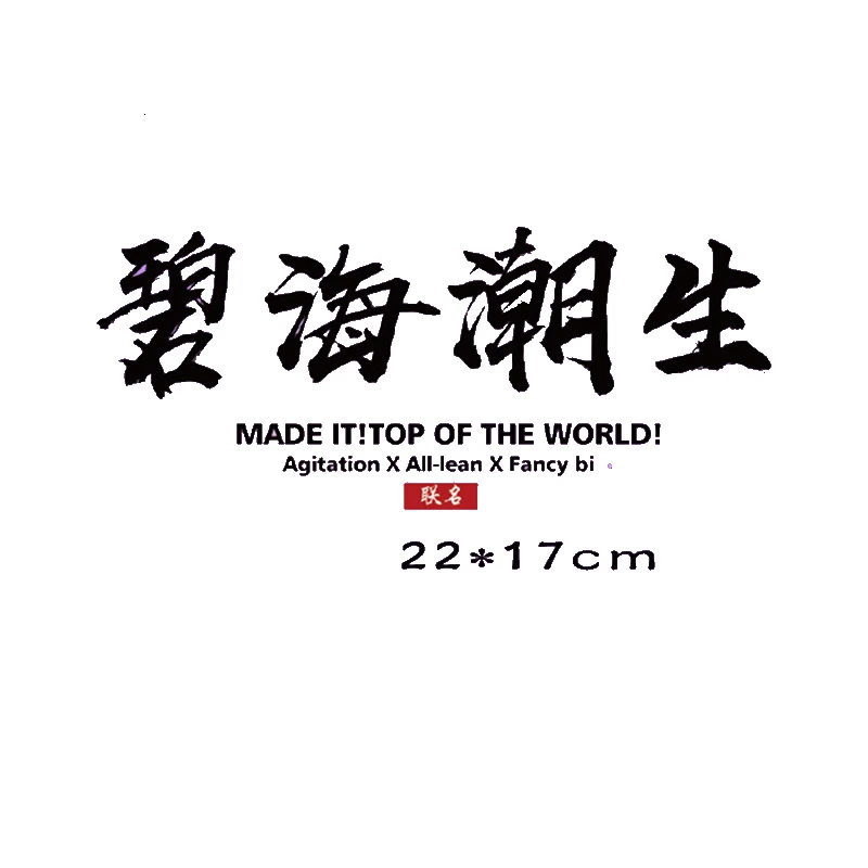 Черно-белые китайские персонажи, морская волна, рыба, термоклейкие Переводные нашивки с надписью для одежды, футболка, термонаклейки из ПВХ
