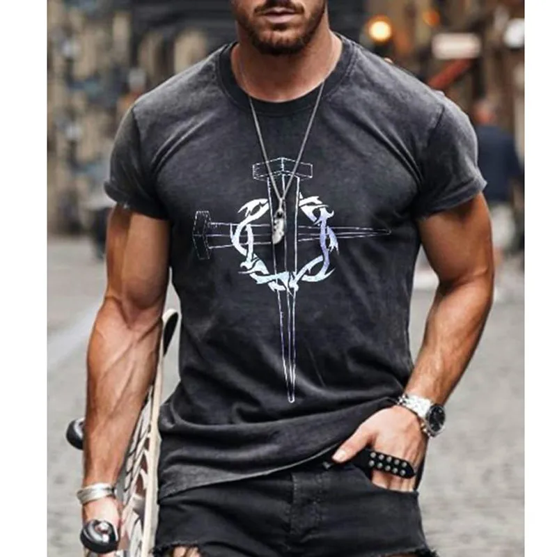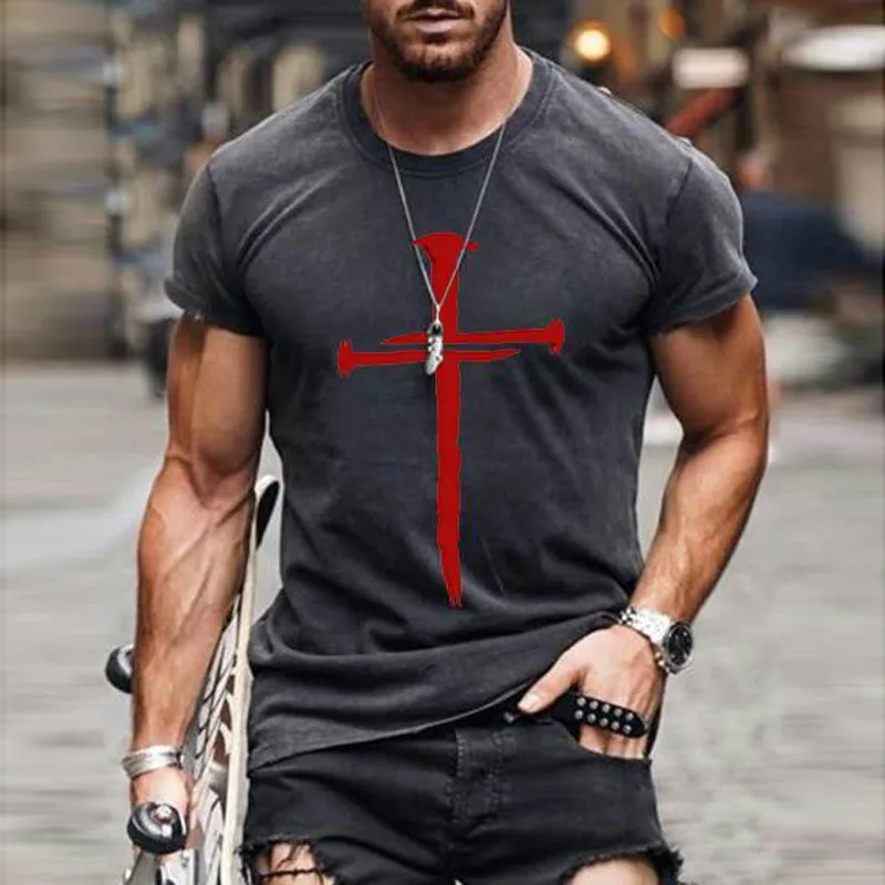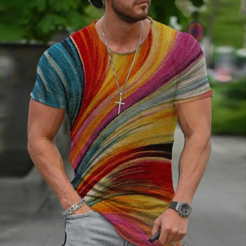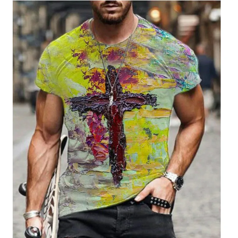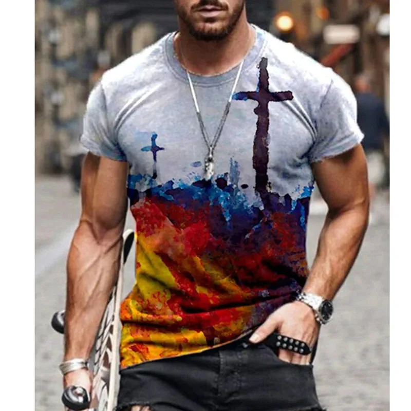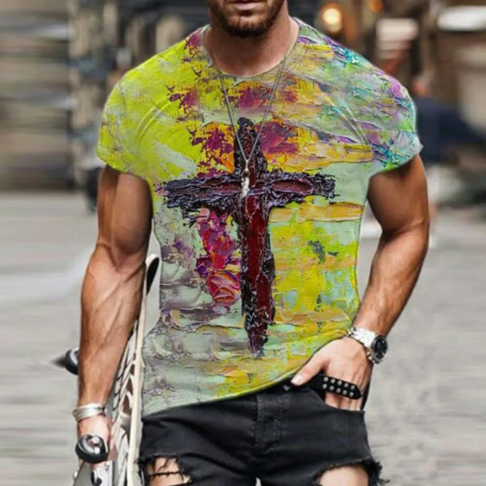 Футболка мужская оверсайз с коротким рукавом, модная цветная рубашка в стиле ретро, с круглым вырезом и перекрестным принтом, в стиле Харадзюку, лето 2021