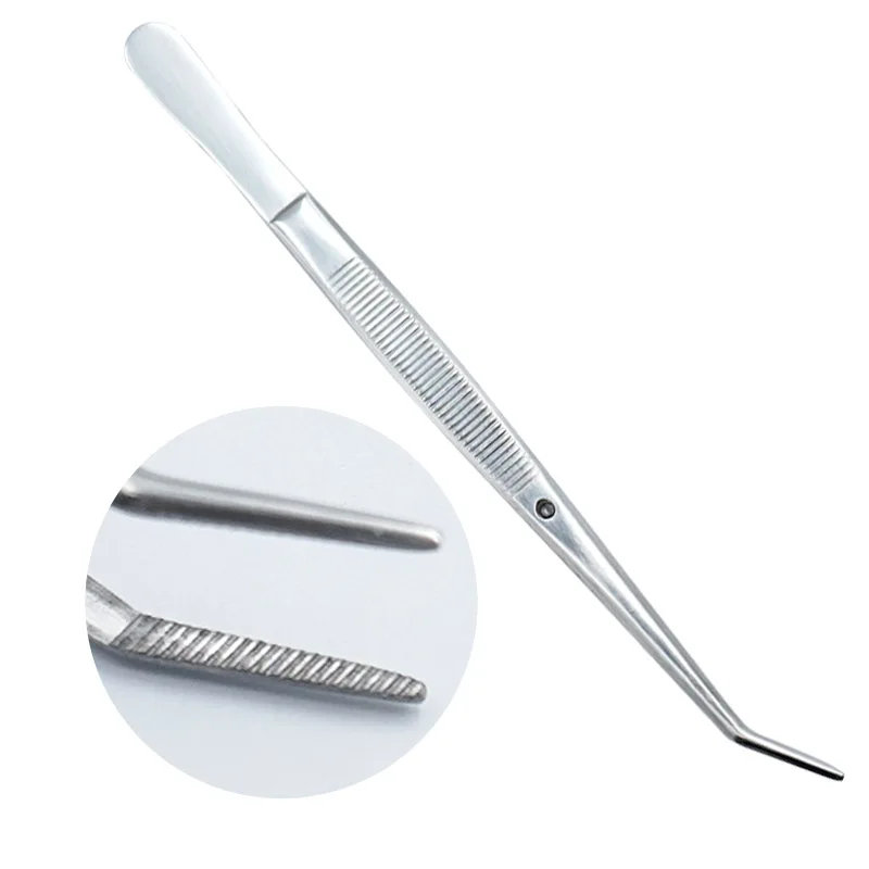 1 шт. стоматологические пинцеты из нержавеющей стали хирургические зубчатые изогнутые щипцы стоматологические инструменты уход за полостью рта чистящий инструмент для стоматологической клиники
