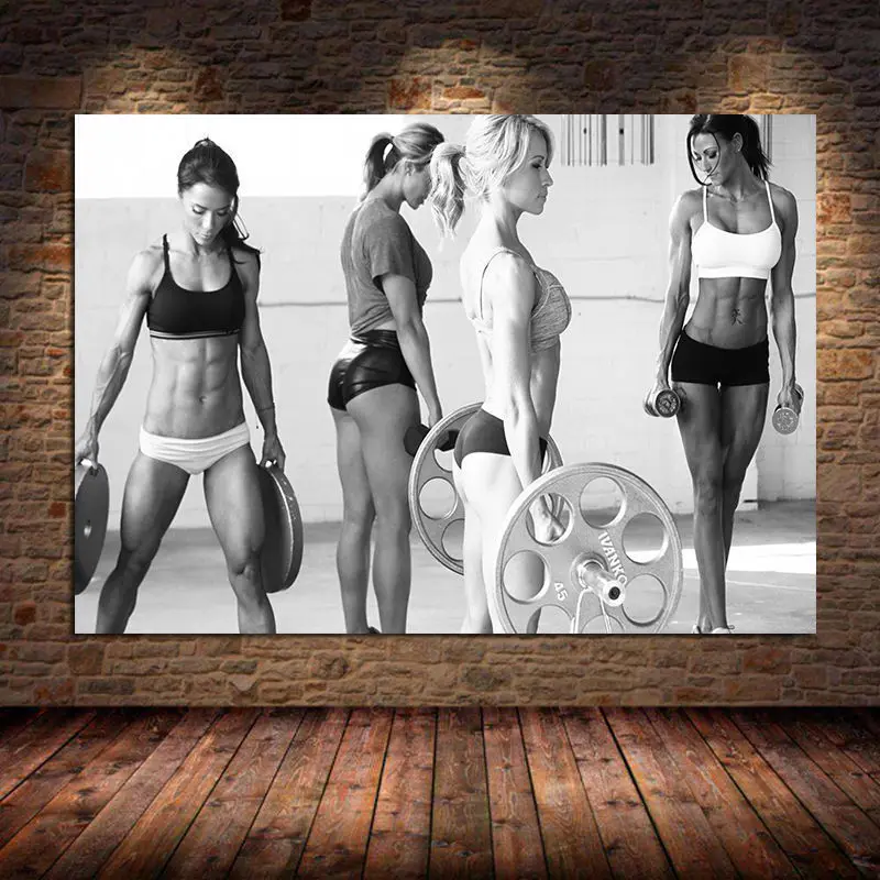 Сексуальные женские фотообои для фитнеса с рисунком на холсте, Шелковые Плакаты и принты для занятий фитнесом, настенные художественные картины для тренажерного зала