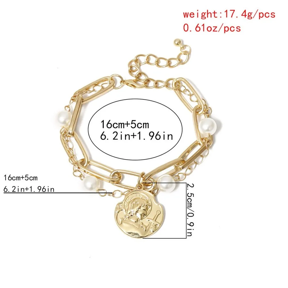 Тип ювелирных изделий: БраслетЦвет: Золотой и СеребряныйМатериал товара: сплав + жемчугОбработка: Гальваническое покрытие + бисер