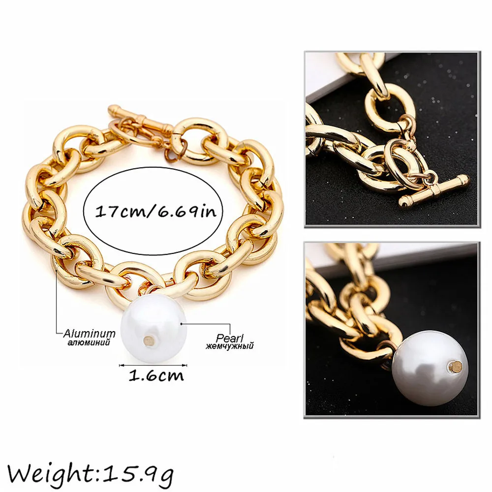 Bohe Шарм искусственная жемчужина, кулон, браслет из бисера браслет Женская повязка стимпанк замок толстая цепочка браслет для женщин, ювелирное изделие