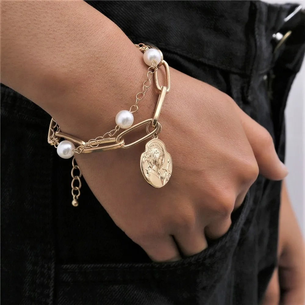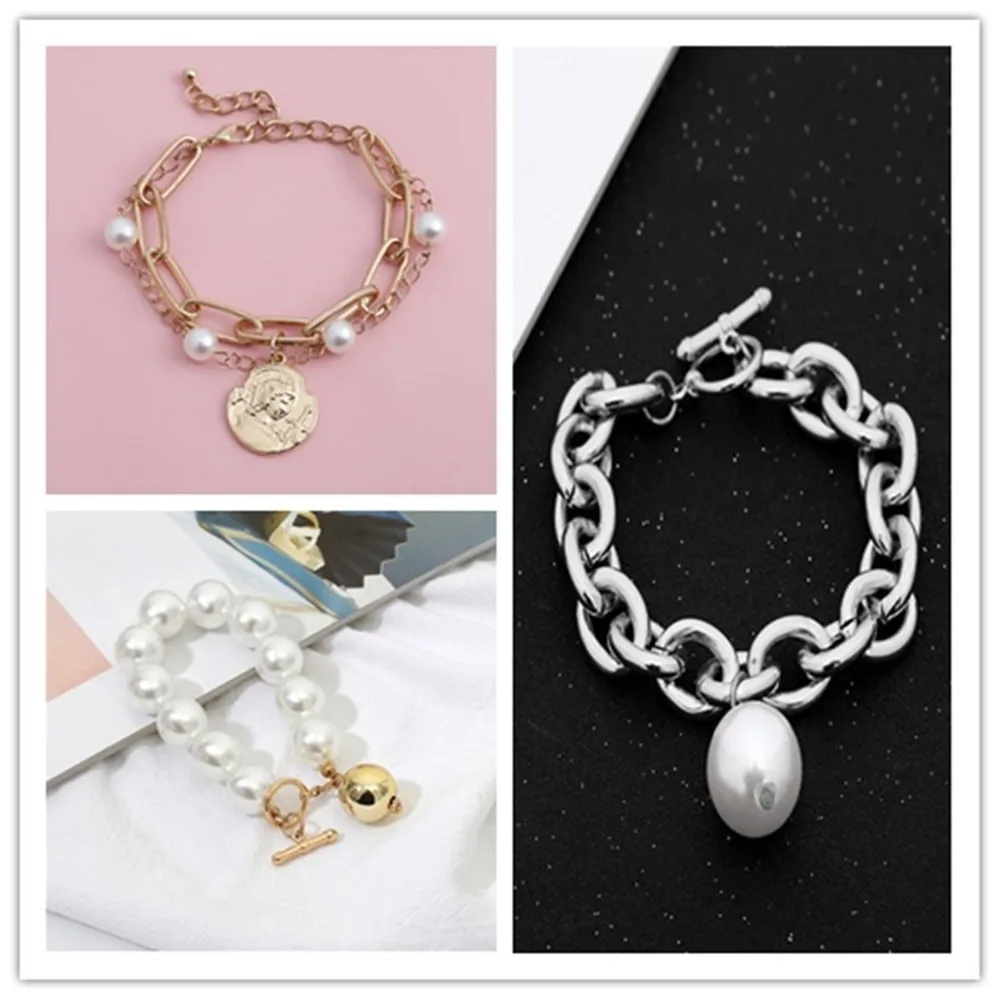 Bohe очарование имитация жемчужина, кулон, браслет, бусы браслет Женская повязка стимпанк замок толстая цепочка браслет для женщин ювелирные изделия