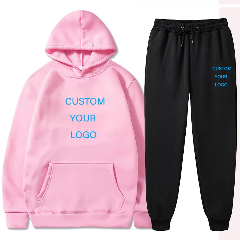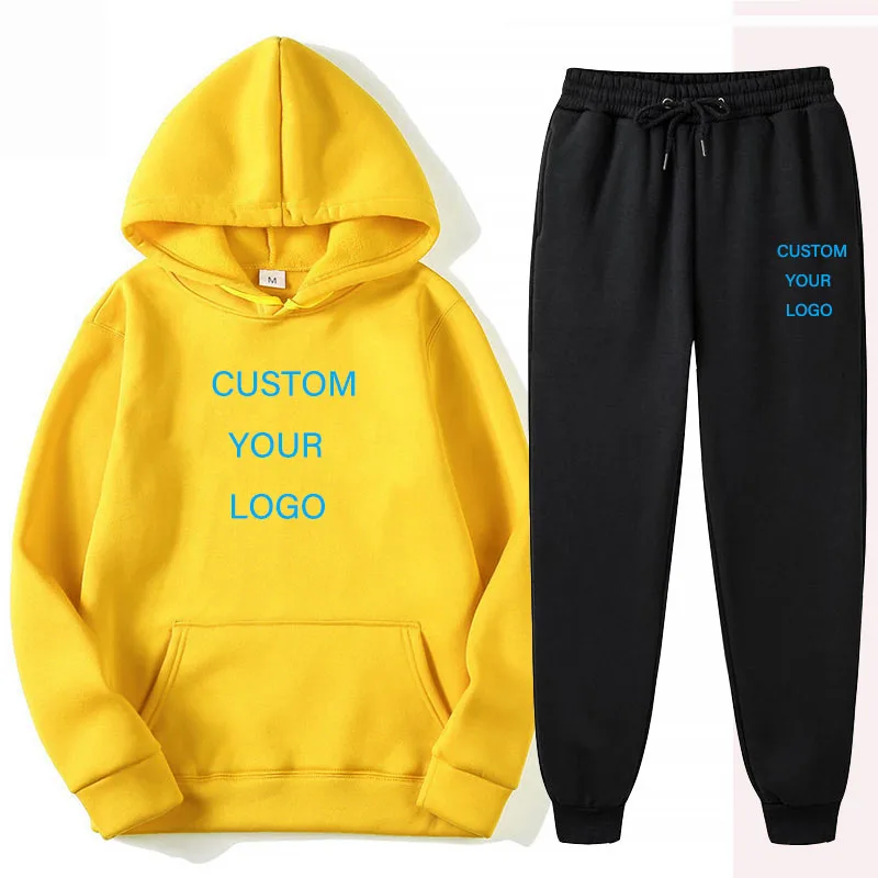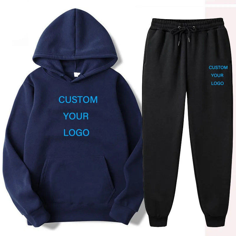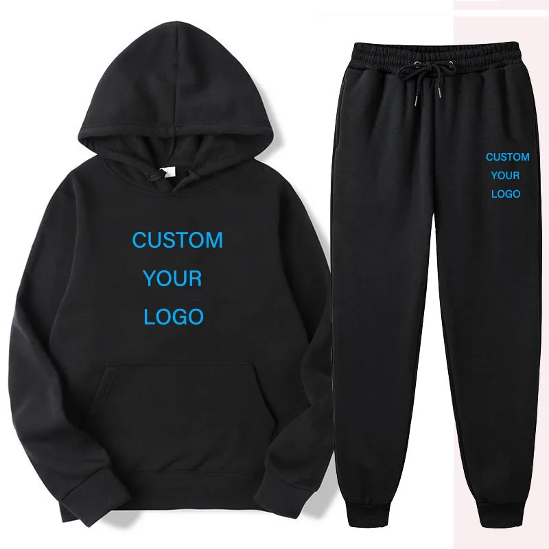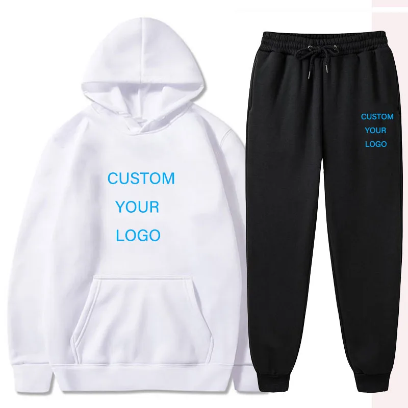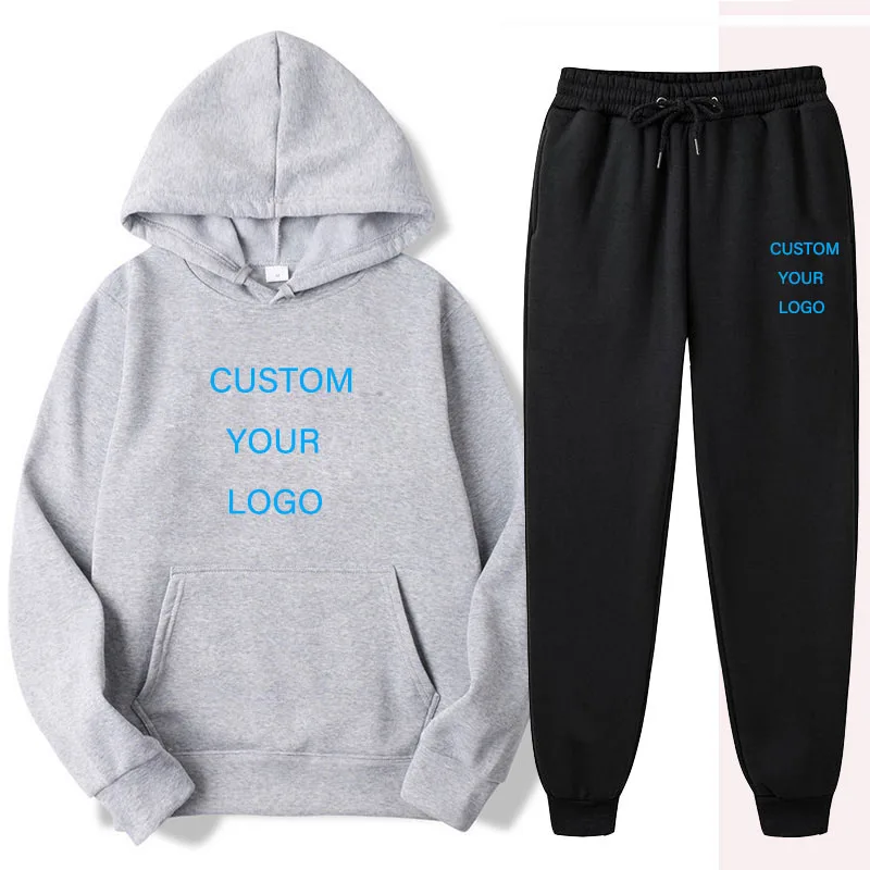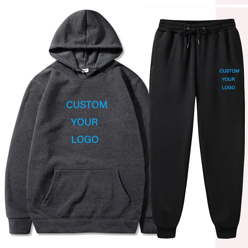 2021 бренд осень-зима мужской спортивный костюм для бега, модные толстовки с капюшоном и принтом и штаны комплект из 2 предметов, комплект с индивидуальным логотипом изображение