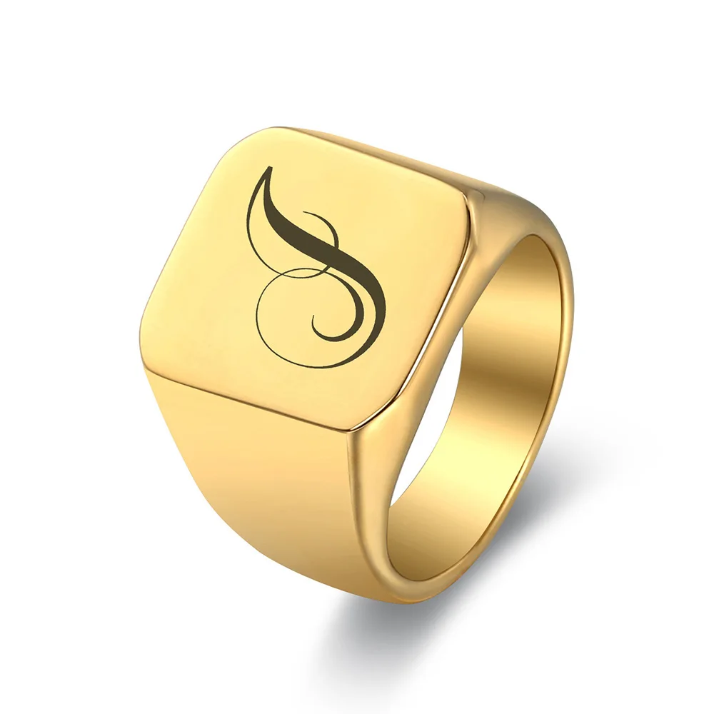 Персонализированные тяжелые A-Z кольцо с начальным штампом для мужчин золото 316L нержавеющая сталь Геометрия уникальное кольцо с печатью подарок для папы HR447
