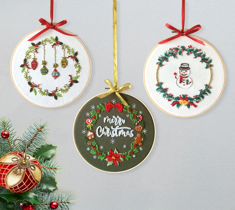 Рождественский Набор для вышивки сделай сам с рамкой для начинающих, с рисунком, вышивка крестиком, рукоделие