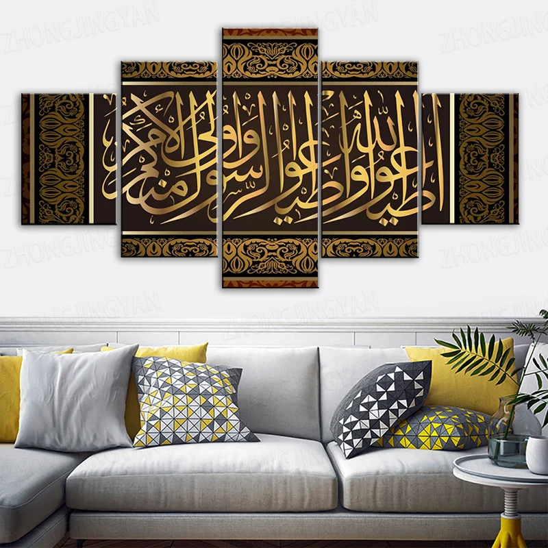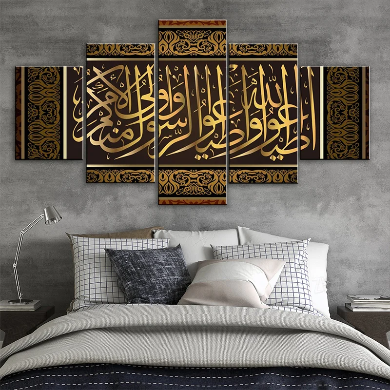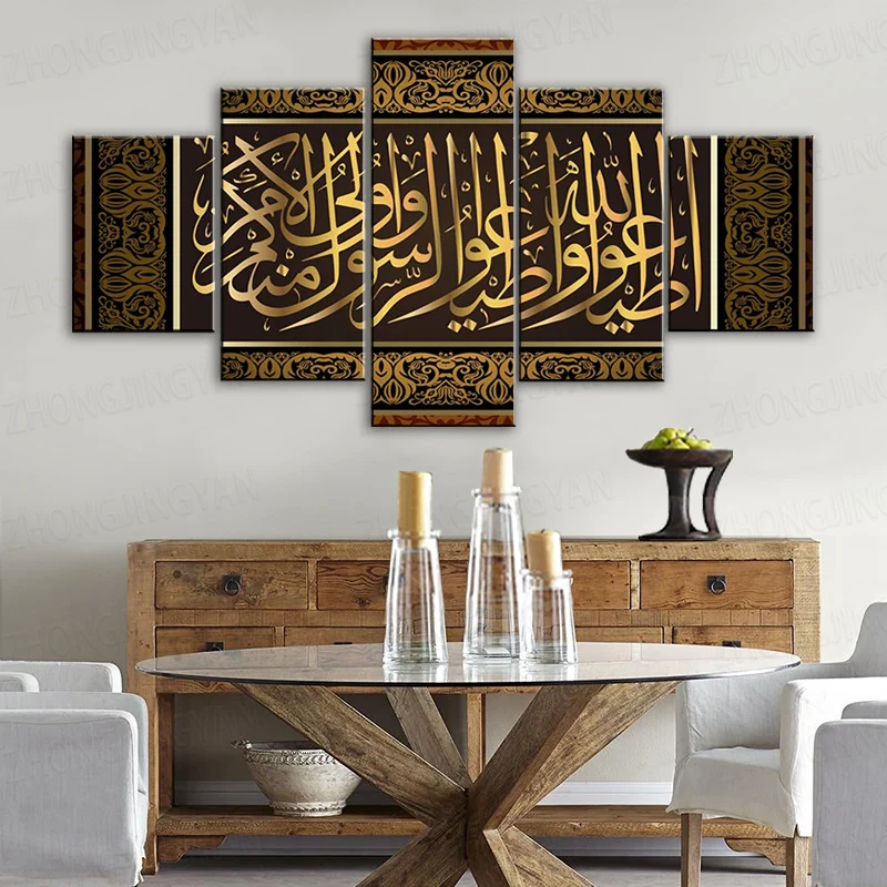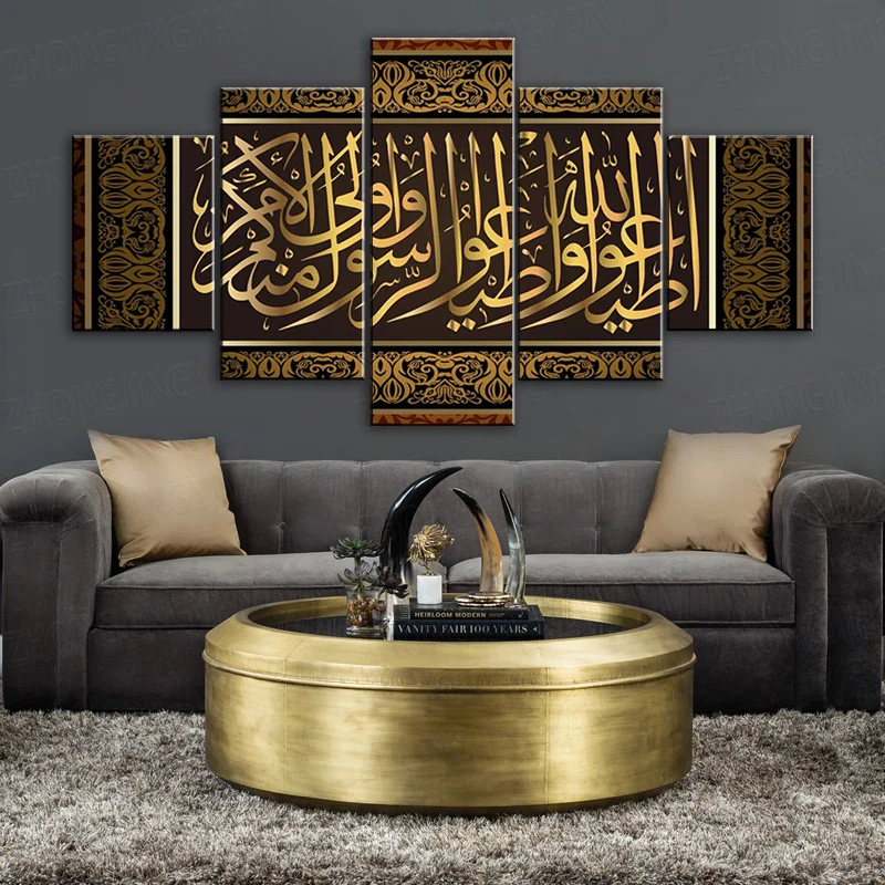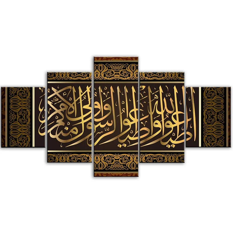 5 панелей для украшения дома, Золотая Настенная картина в стиле ретро, ислам, ИК, Коран, ислам, религиозный Бог ала, 5 художественных работ