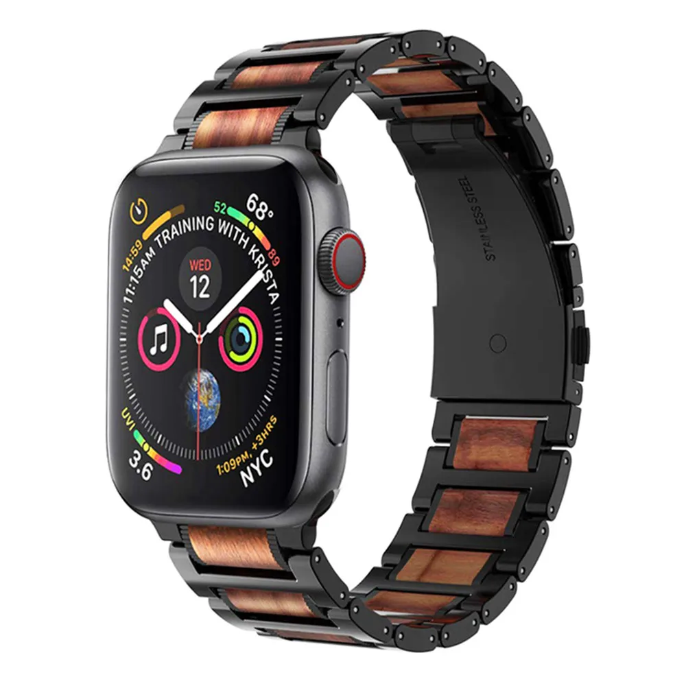 Деревянный ремешок для apple watch 44 мм, 40 мм, 45 мм, 41 мм, 42 мм, 38 мм, браслет из нержавеющей стали для iwatch Apple watch series 5, 4, 3, se, 6, 7