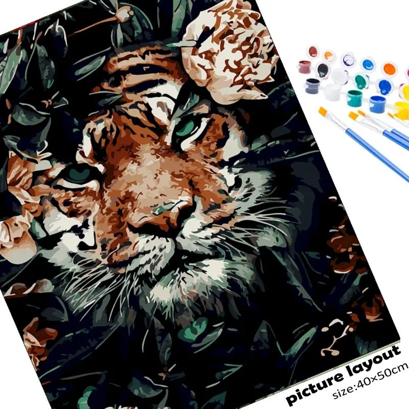 Набор для рисования по номерам на холсте Цветы, животные, Лев, тигры