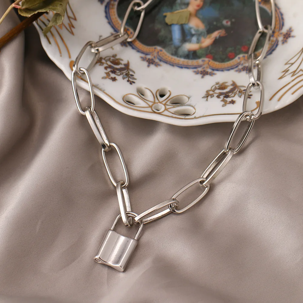 Рок колье замок ожерелье в стиле панк цепочка на шею ювелирные изде...