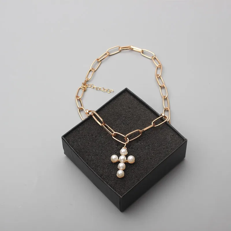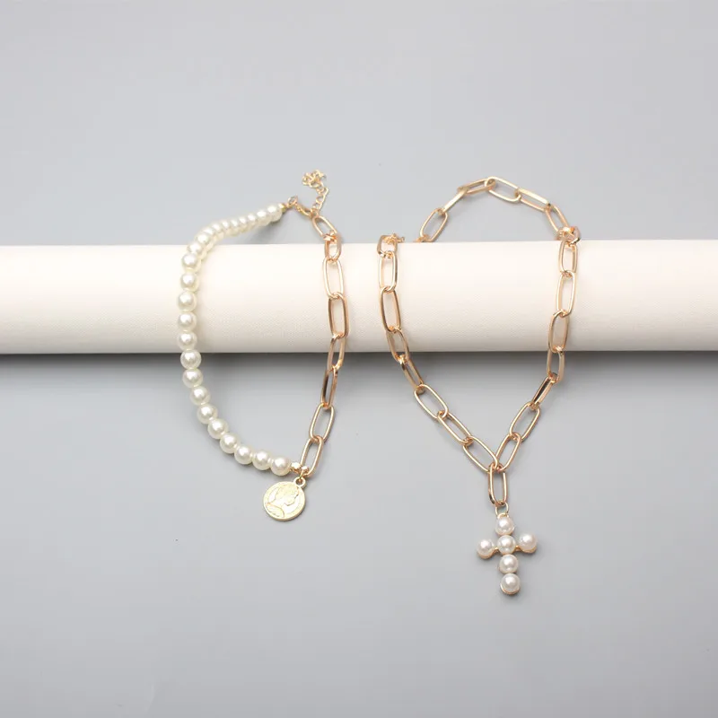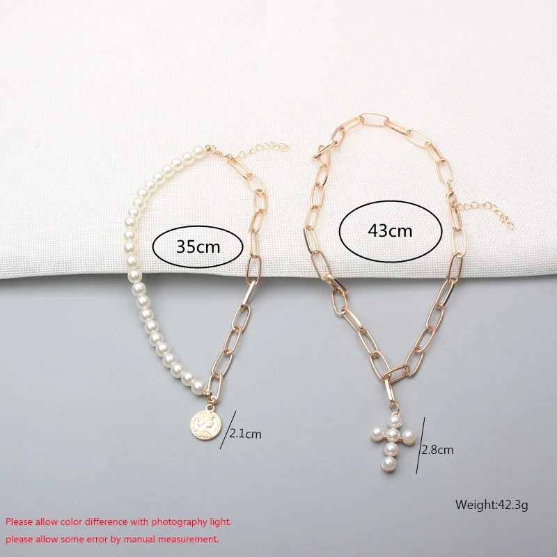 Ожерелье женское с подвеской в виде креста, 2 шт.компл., золотого цвета, с фигуркой головы, короткое колье цепь