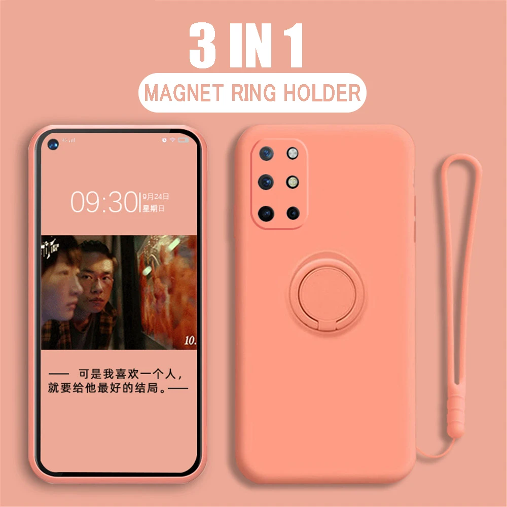 Жидкий силиконовый чехол для OnePlus 9 Pro Чехол-держатель с кольцом, мягкий матовый защитный чехол для камеры Oneplus Nord 8 Pro с ремешком