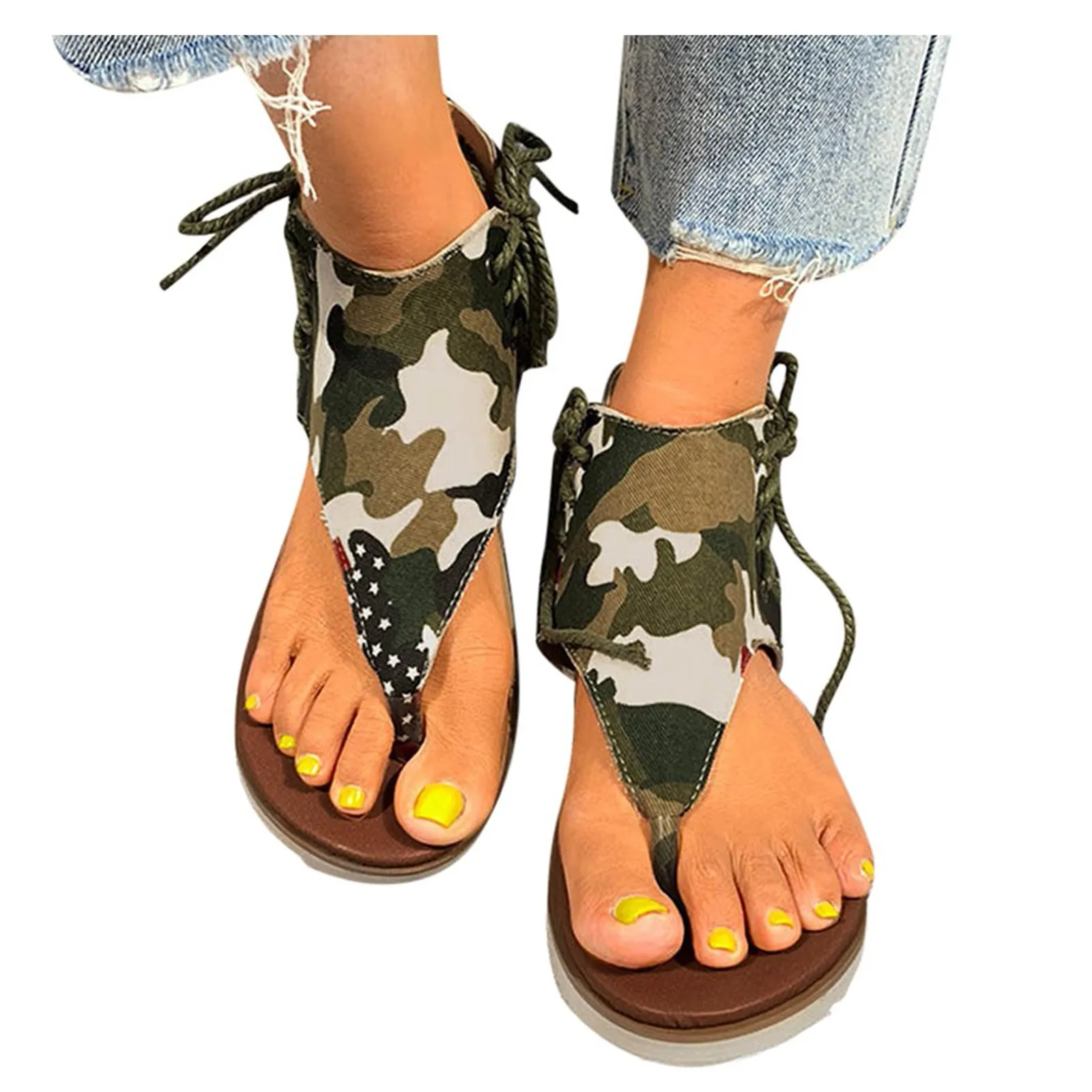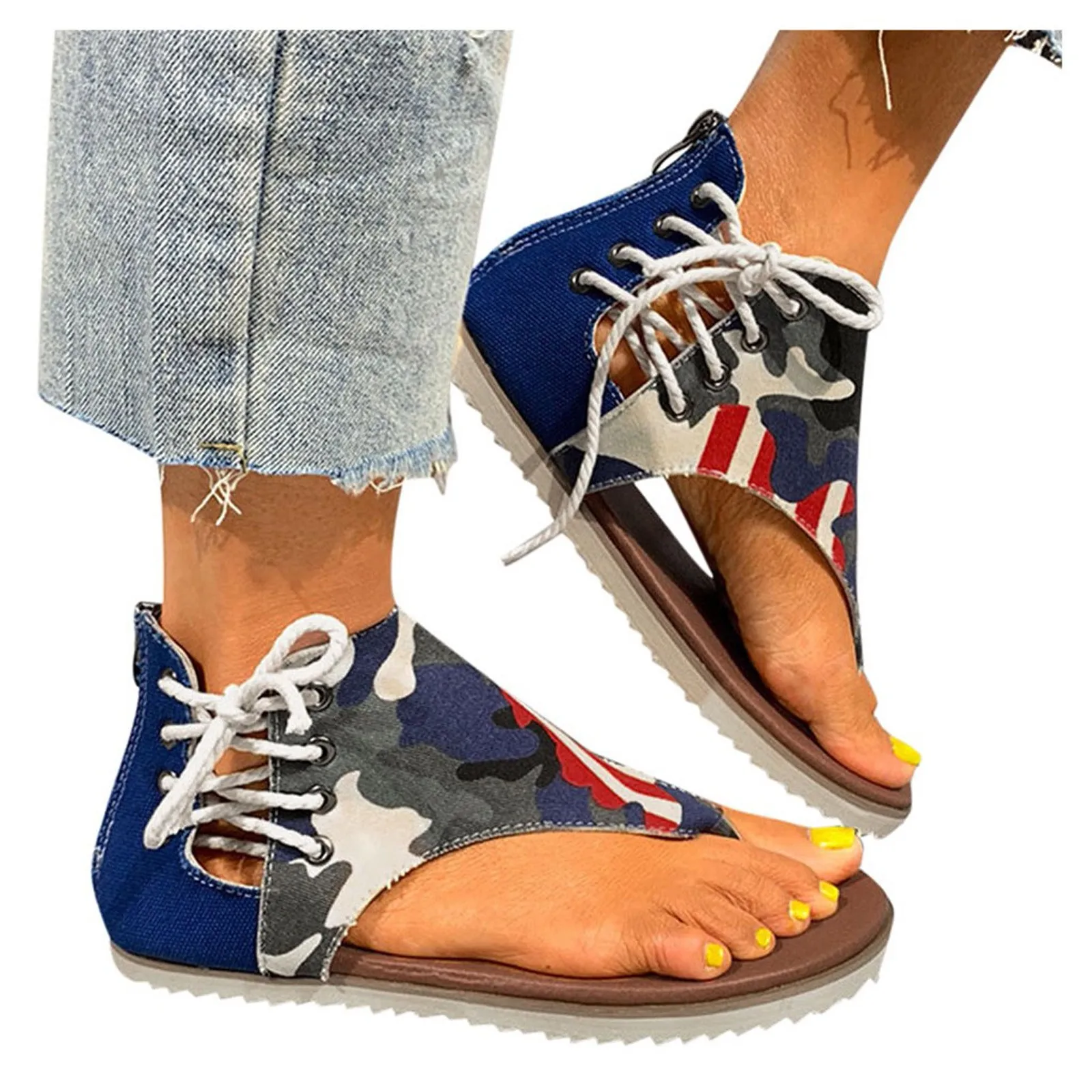 Женская летняя камуфляжная обувь на молнии; Пляжные дышащие сандалии с открытым носком на плоской подошве
