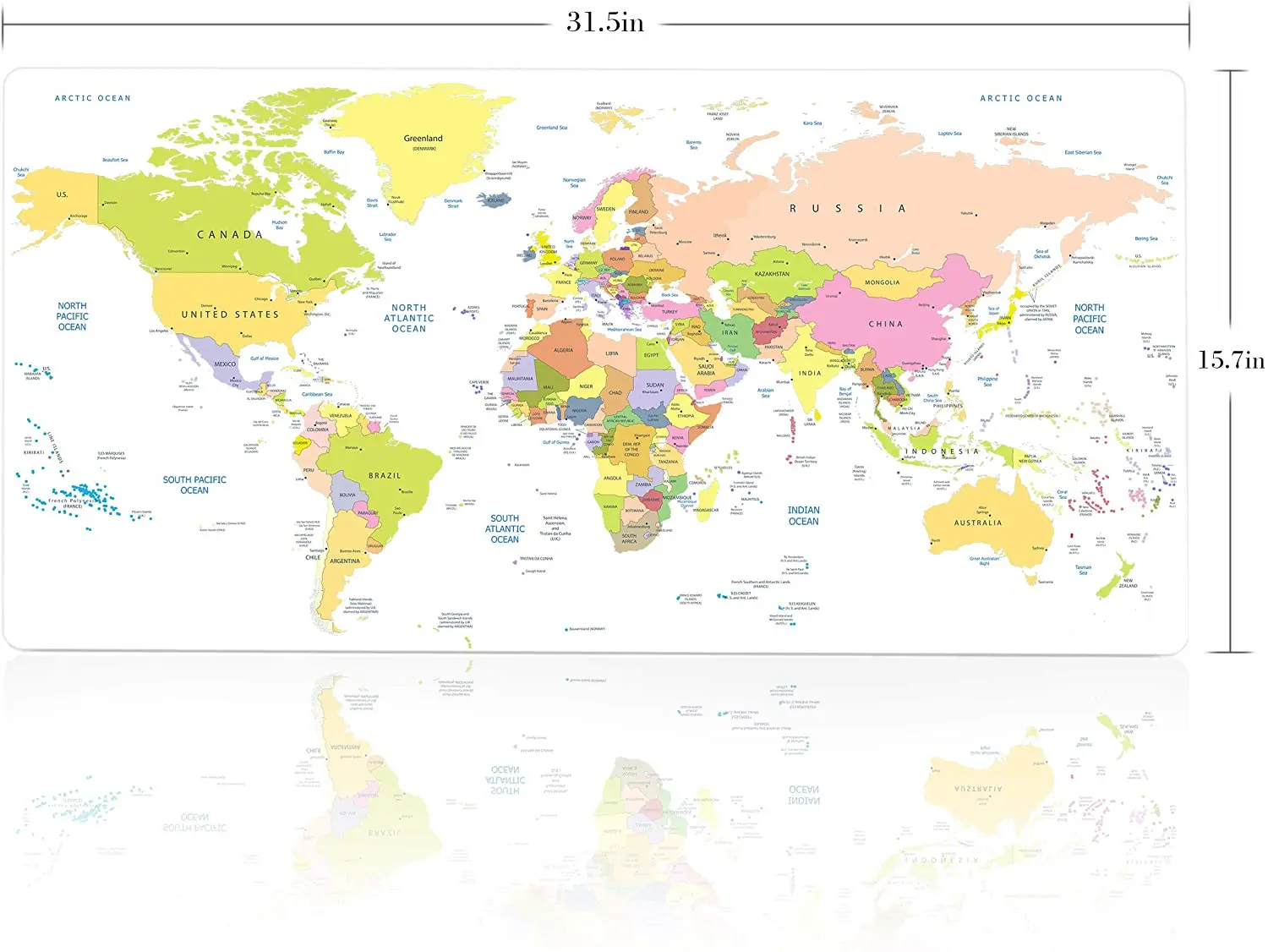 Настольный коврик, водонепроницаемый и нескользящий коврик для мыши, идеально подходит для офиса, компьютерной клавиатуры, персонального компьютера и ноутбука-карта мира