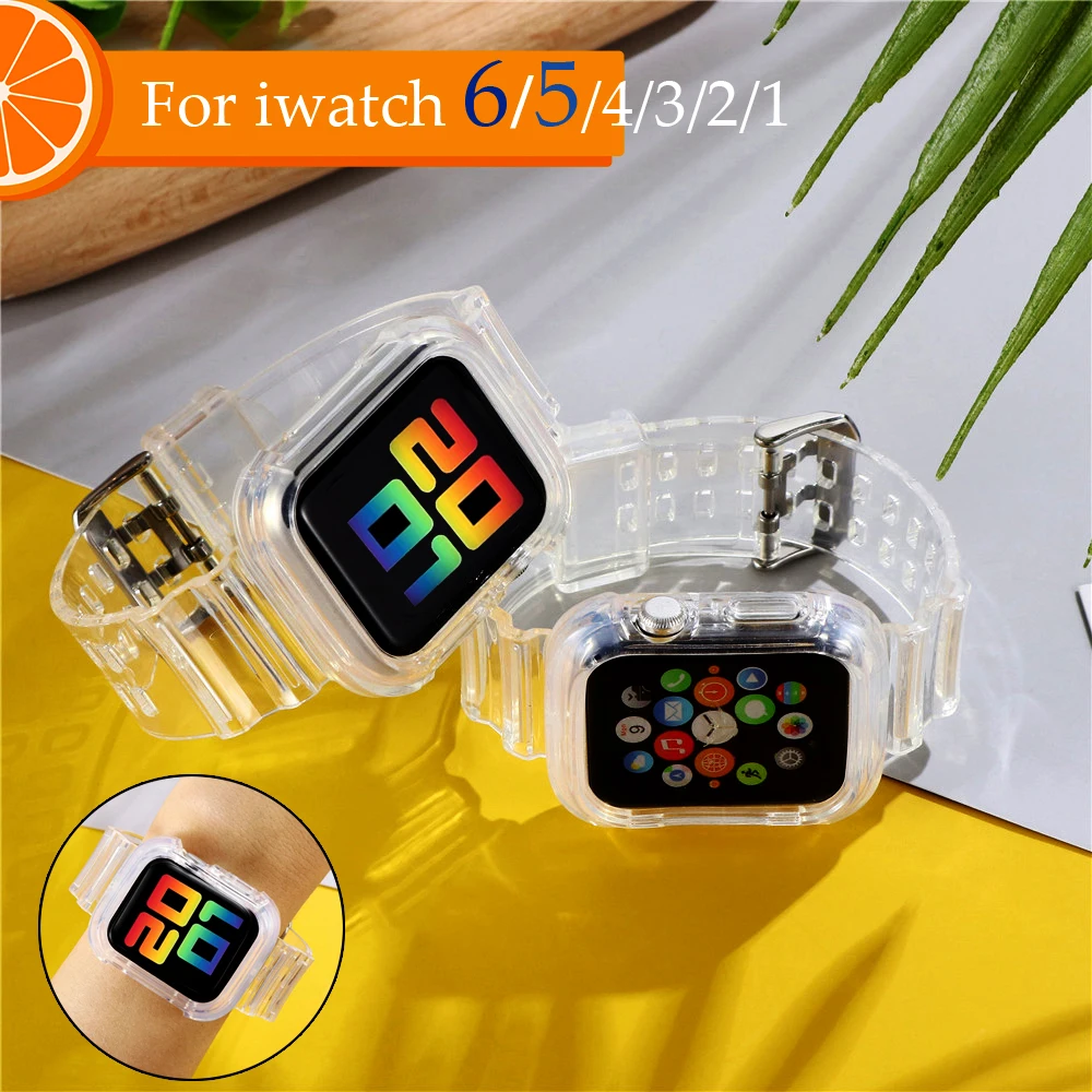 Ремешок спортивный для Apple Watch Band Series 6 1 2 3 4 5, силиконовый прозрачный браслет для Iwatch 5 4, 38 мм 40 мм 42 мм 44 мм, аксессуары
