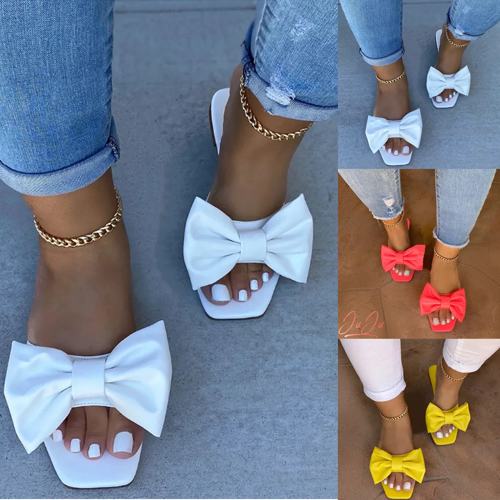 Женские сандалии; Тапочки на плоской подошве с бантом; Повседневная пляжная обувь для дома и улицы