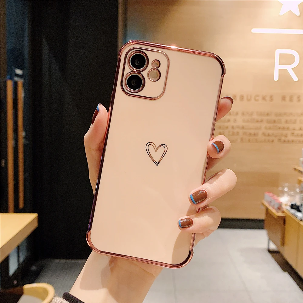 Роскошный чехол для телефона с покрытием для iPhone 12 11 Pro XR XS Max Mini 7 8 Plus SE2, позолоченный силиконовый защитный чехол для объектива с сердечками
