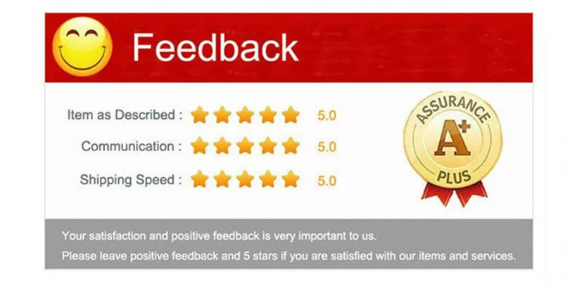 3. Если вы постоянный покупатель, и если вы дадите нам 5 звезд и положительные отзывы для вашего заказа. Когда вы размещаете новый заказ в нашем магазине. Вы можете отправить сообщение на ваш новый заказ и дать нам ваш последний номер заказа. Мы